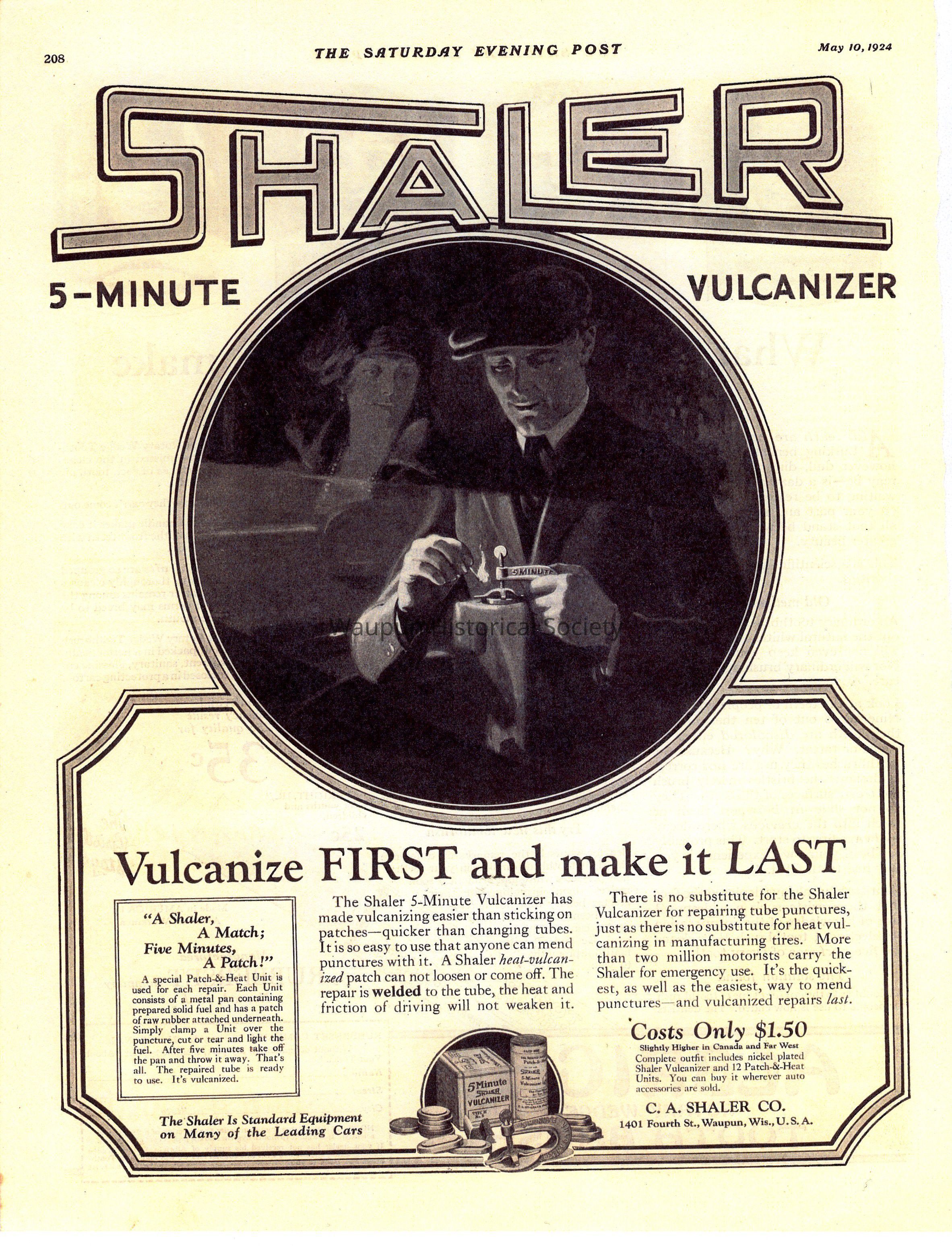 Shaler Vulcanizer ad from the Saturday Evening Post of May 10, 1924.