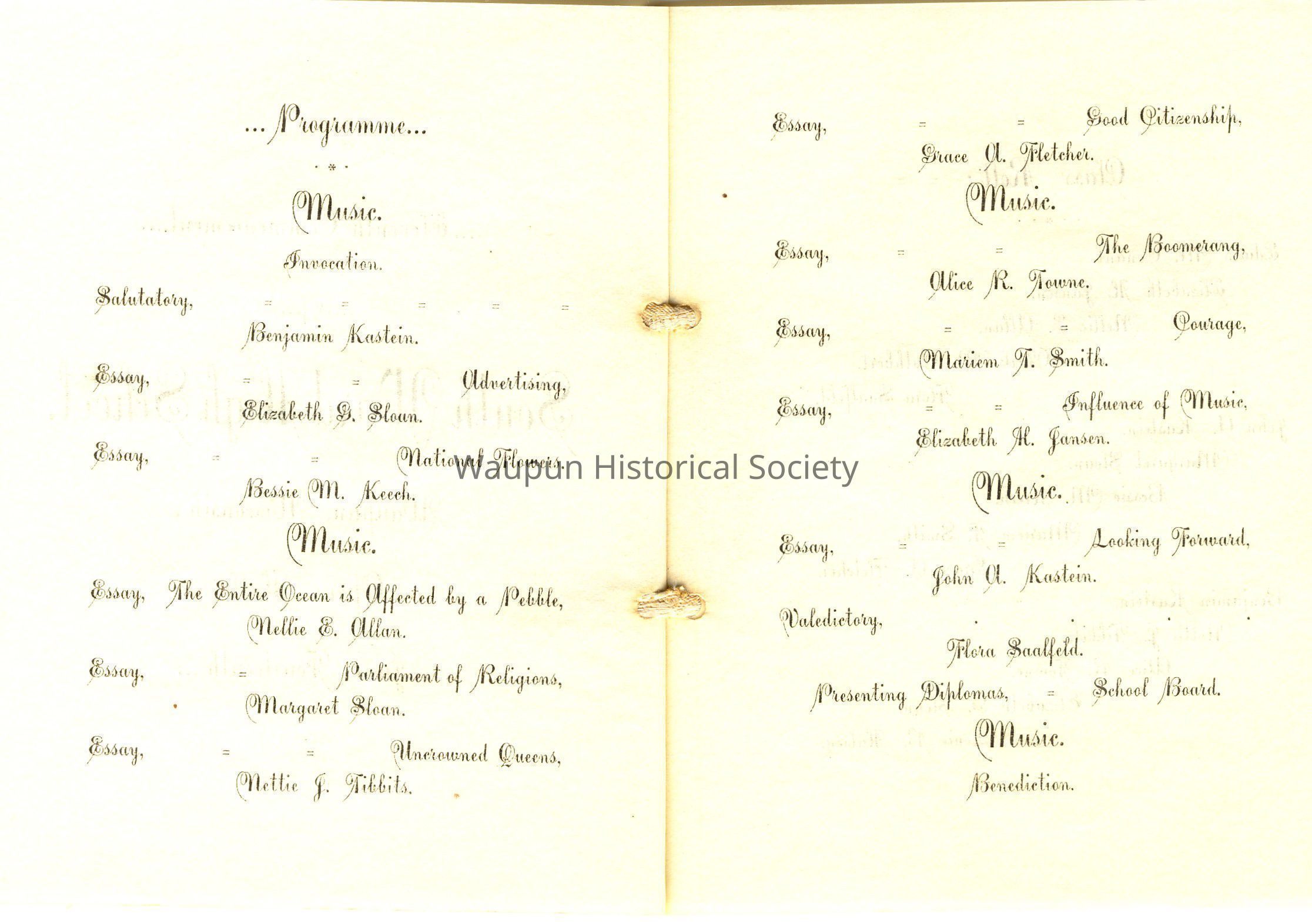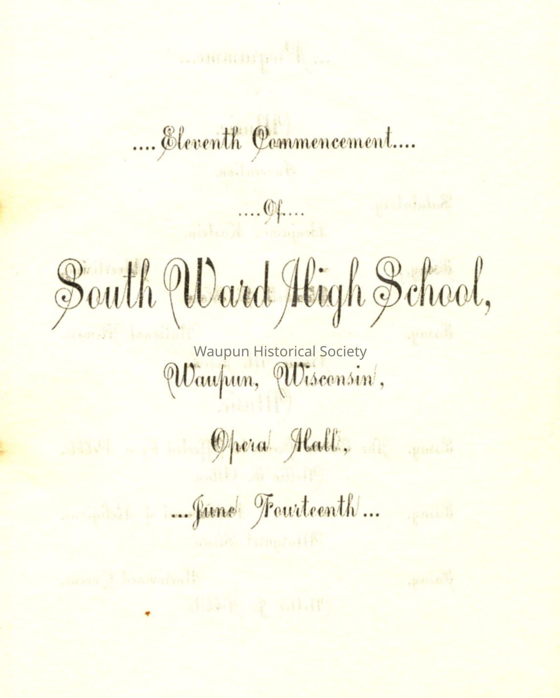Eleventh Commencement of South Ward High School, Waupun, Wisconsin, Opera Hall, June 14, 1894.