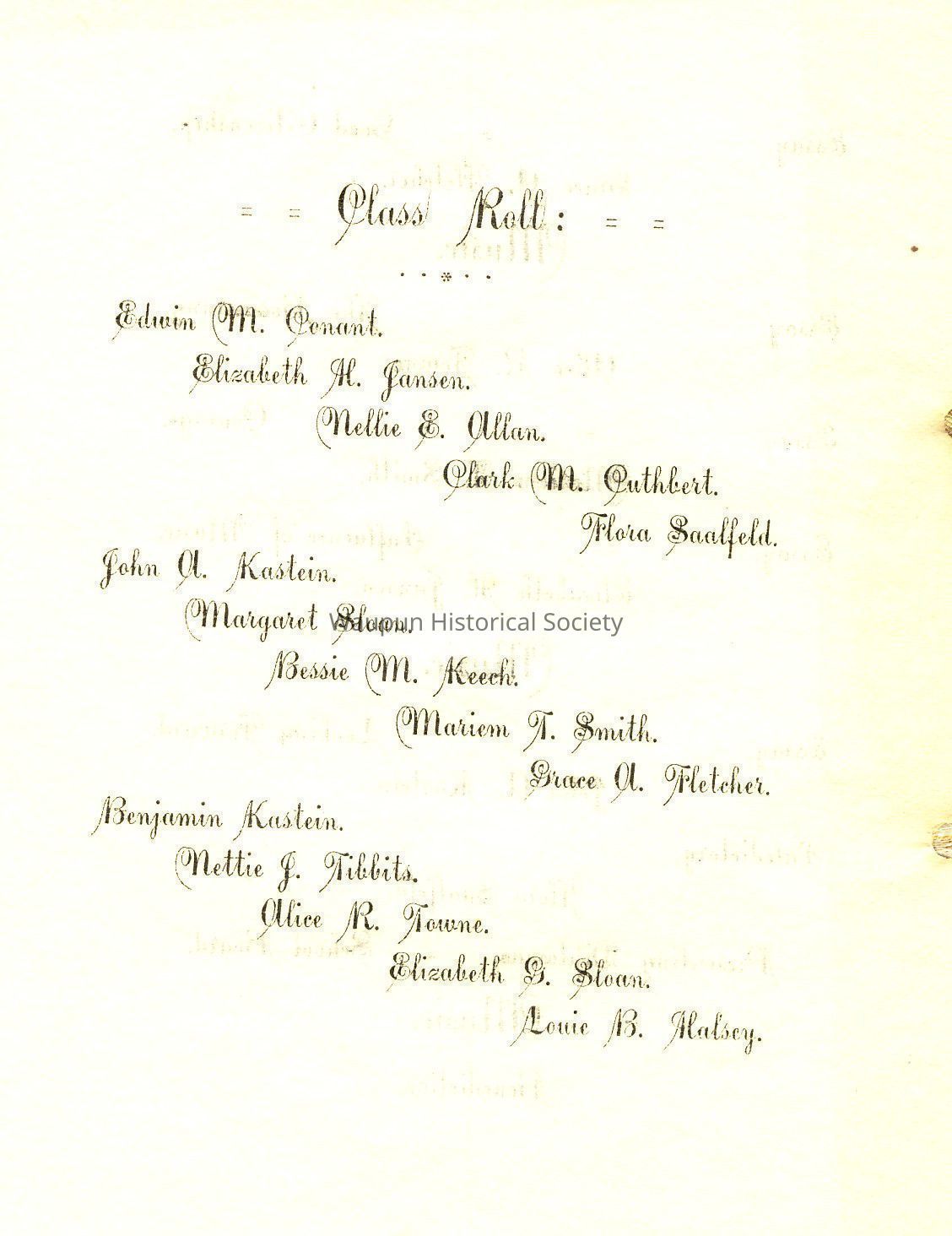 Edwin M. Conant, Elizabeth H. Jansen, Nellie B. Allan, Clark M. Cuthbert, Flora Saalfeld, John A. Kastein, Margaret Sloan, Bessie M. Keech, Mariem T. Smith, Grace A. Fletcher, Benjamin Kastein, Nettie J. Tibbits, Alice R. Towne, Elizabeth G. Sloan, Louie B. Halsey.Acquisition