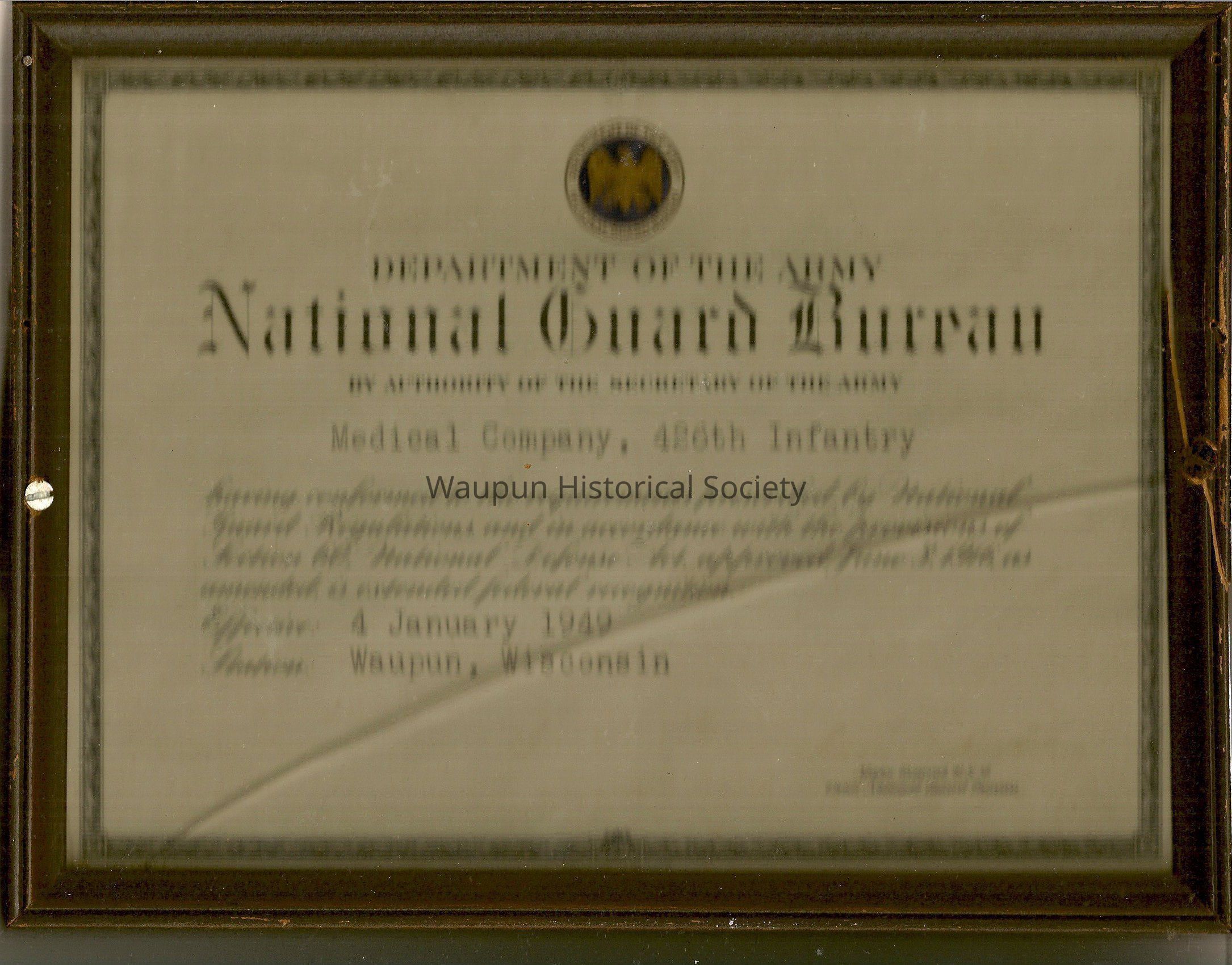 Department of the Army National Guard Bureau by authority of the secretary of the army Medical Company, 426th Infantry having conformed to the requirements prescribed by National Guard Regulations and in accordance with the provisions of Section 60, National Defense Act, approved, June 3, 1916, as amended, is extended federal recognition.