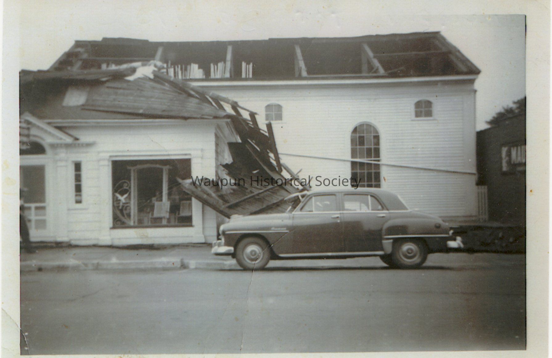 1953 Tornado. These photos were donated to the museum by Mildred & Donna Eisele. The picture is thought to be of the Waupun lumber yard's main building after the 1953 Tornado.