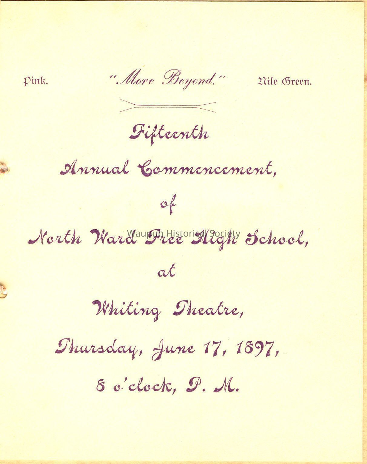 Fifteenth Annual Commencement of North Ward Free High School, at Whiting Theater, Thursday, June 17, 1897, 8 o'clock, P. M.