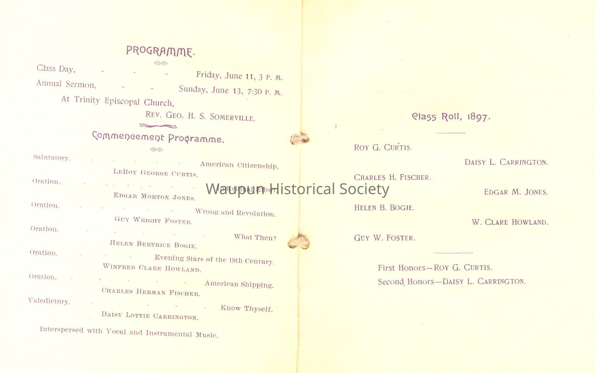 Program, Commencement, North Ward High School, 1897Entry/Object ID