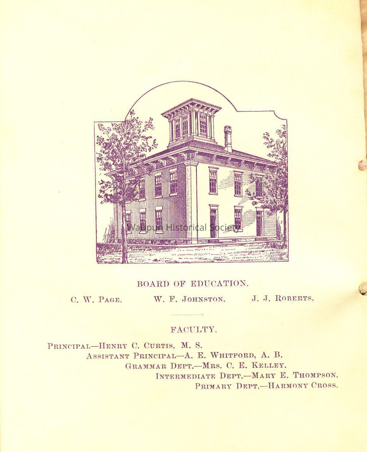 PRINCIPAL - HENRY C. CURTIS, M. S.; ASSISTANT PRINCIPAL - A. E. WHITFORD, A. B.; GRAMMAR DEPT. - MRS. C. E. KELLEY; INTERMEDIATE DEPT. - MARY E. THOMPSON; PRIMARY DEPT. - HARMONY CROSS.Acquisition