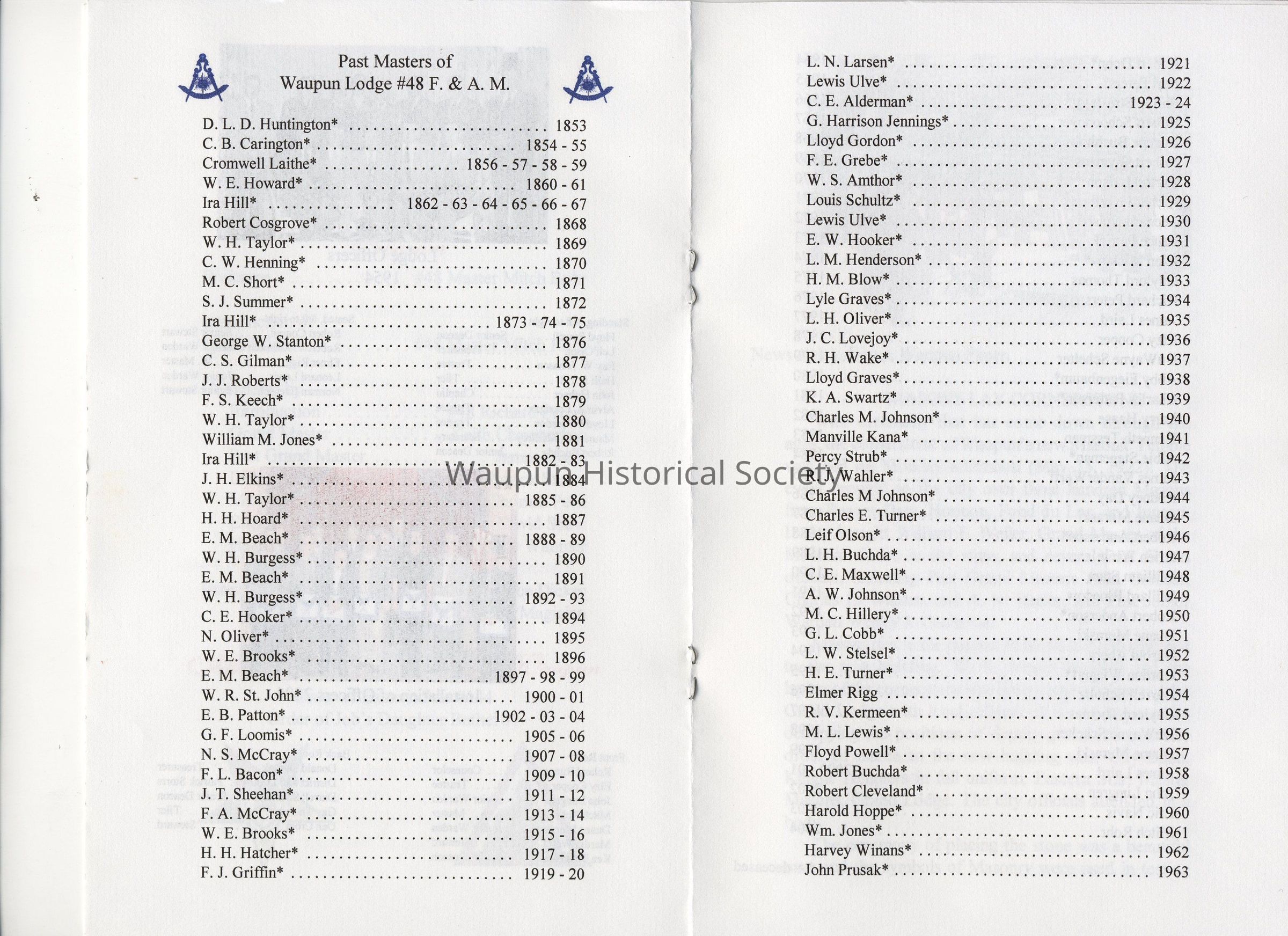 Masonic Lodge Program. Waupun F. & A. M. #48 Sesquicentennial celebration program