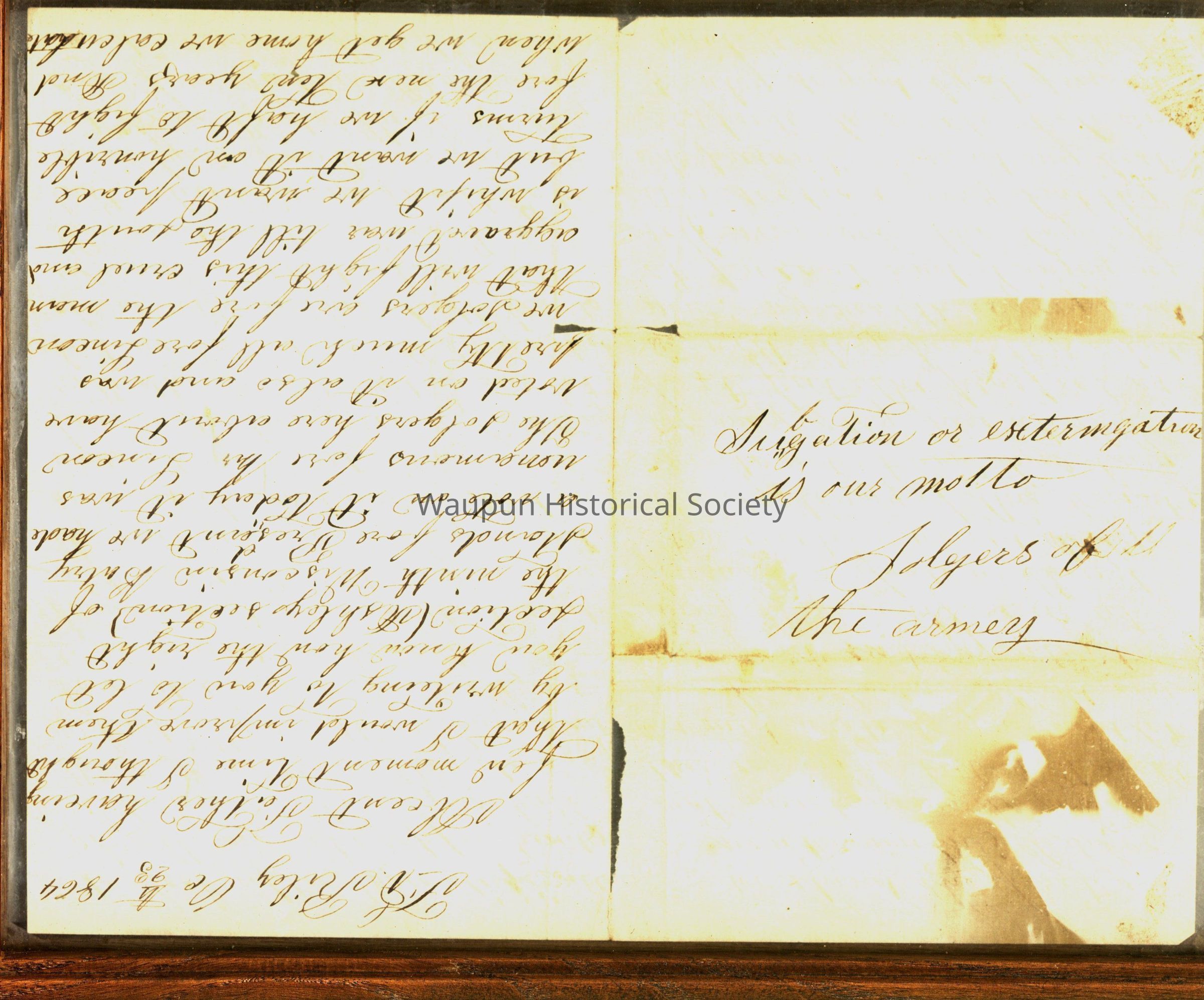 Civil War Letter Home. This letter, framed in an oak frame and double sided glass, is from Chas. Fowler to F. N. Riley on Oct. 23, 1864. In it he talks of the war, his support for the war, his fellow soldiers and his support for Lincoln.Acquisition