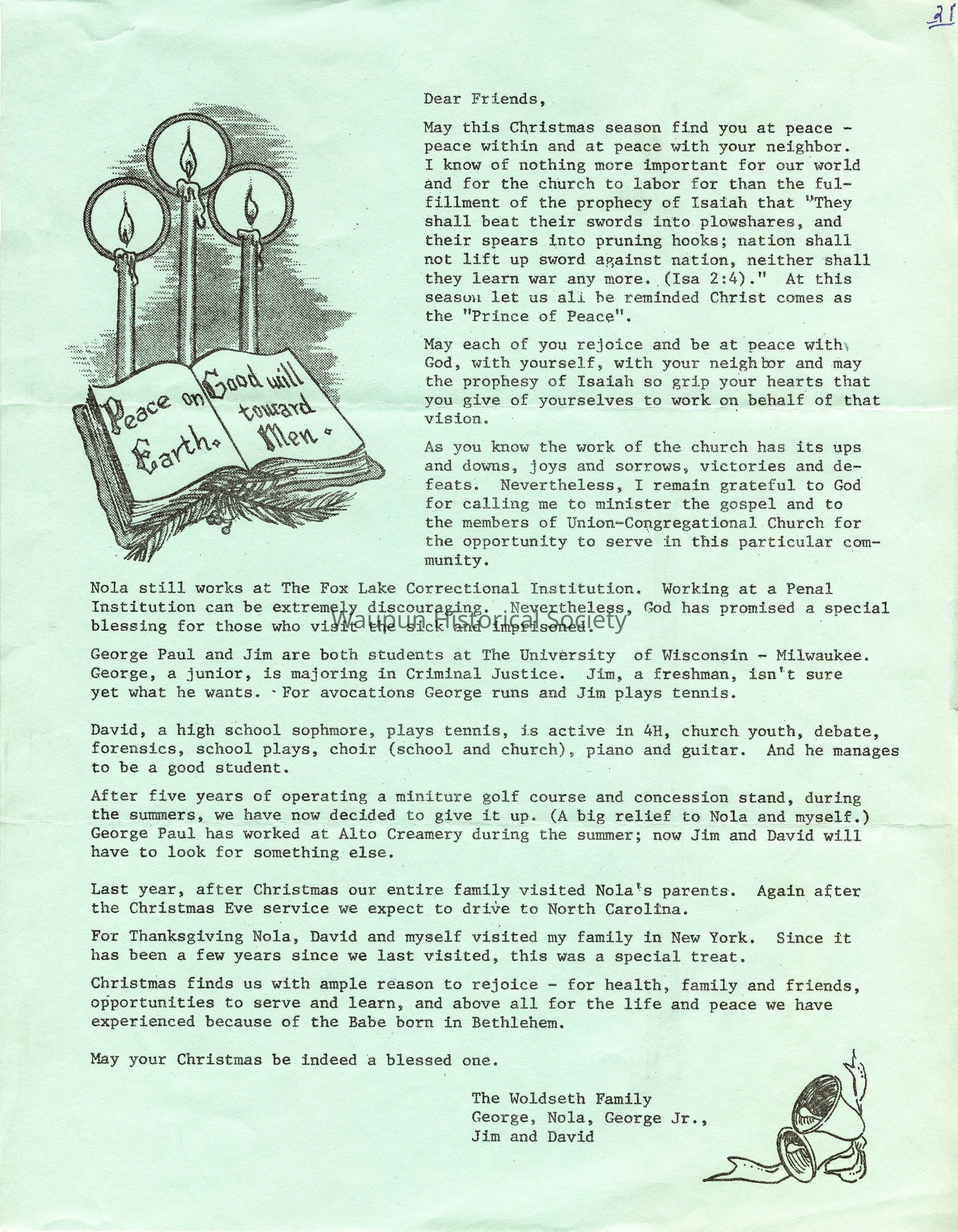 Christmas Letter, Church, Union-Congregational, UCC, WoldethEntry/Object ID