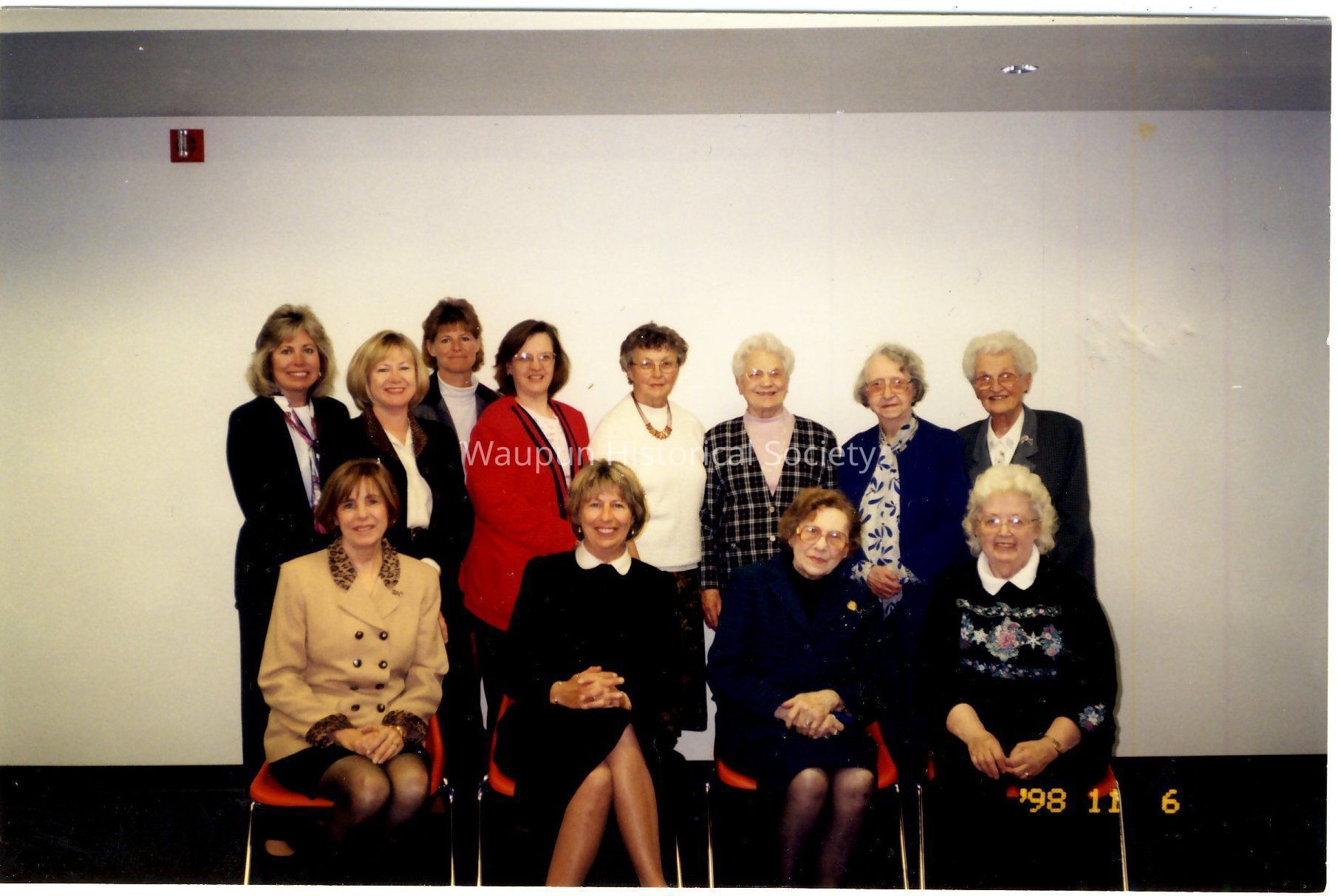 Photo taken during the occasion of Minnie Drummy's 50 year anniversary as a member of the DAR. Other individuals in photo are not named. There is no mention of year, but was possibly 1998 because '98 11 6 is on the front of the photo.Acquisition