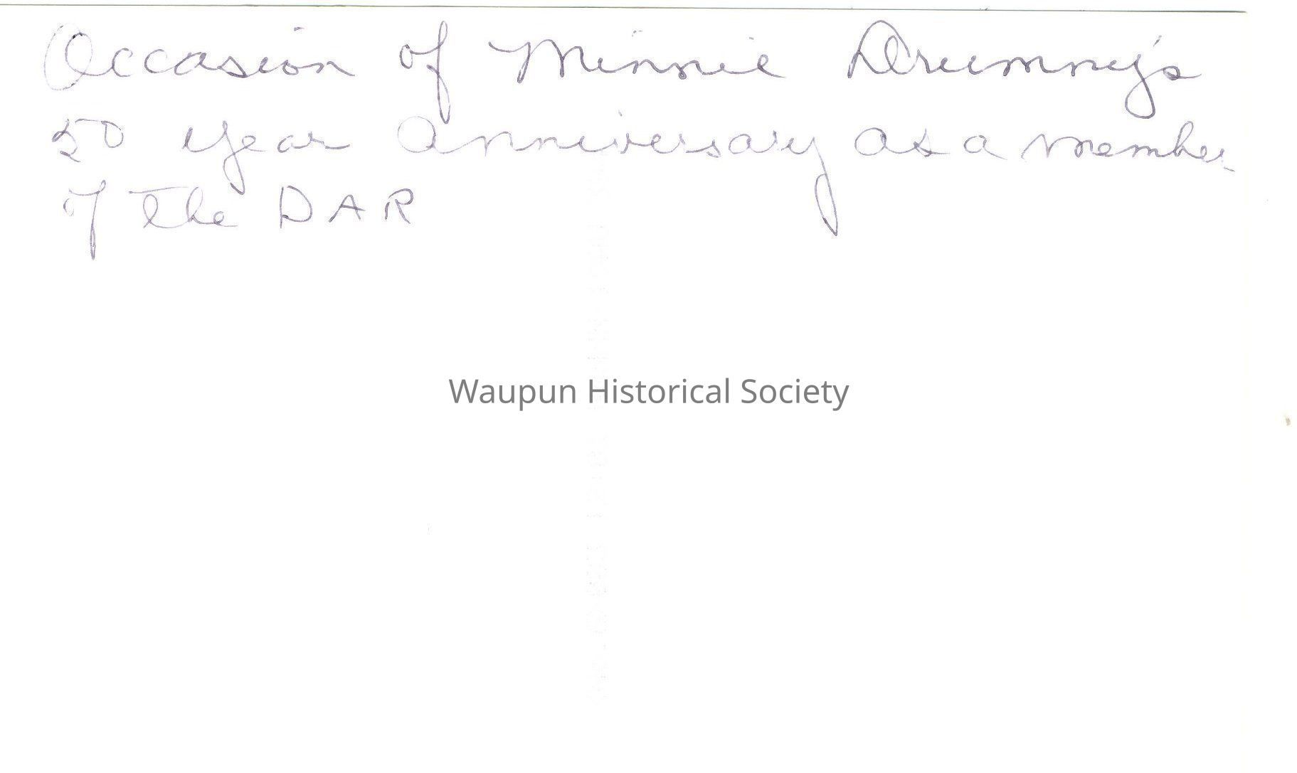 Photograph, 50th Anniversary, Minnie Drummy in Daughters of the American Revolution, DAREntry/Object ID