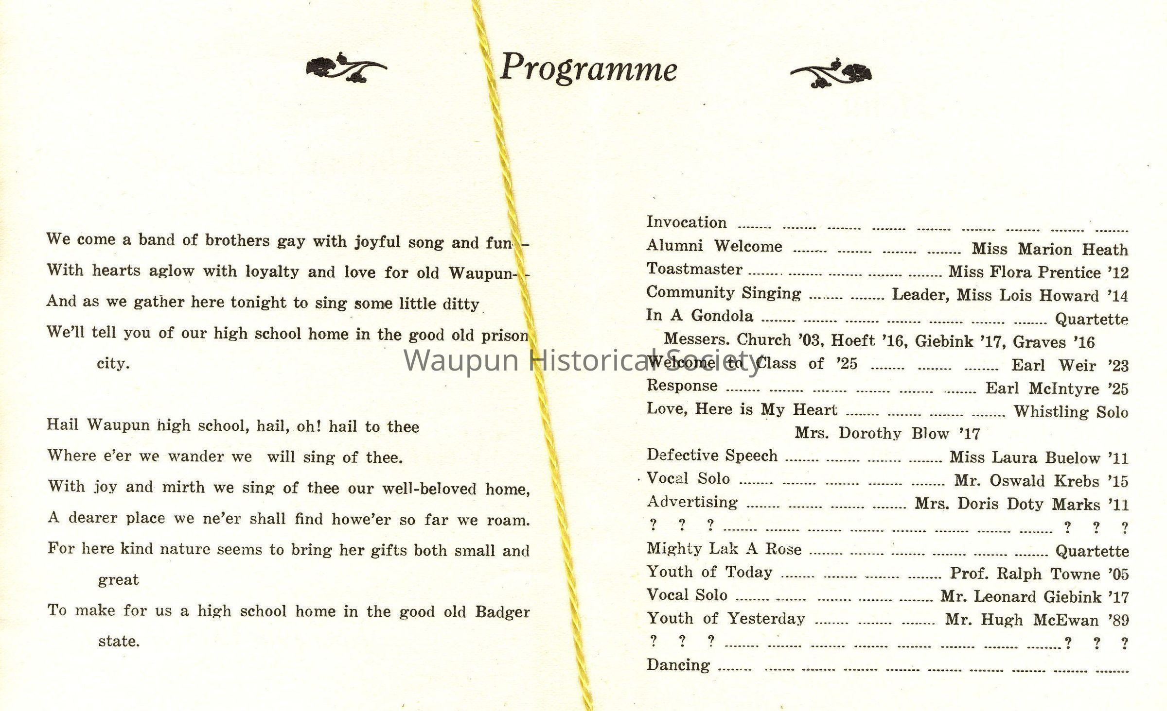 Program, Alumni Banquet, Waupun High School, 1925Entry/Object ID