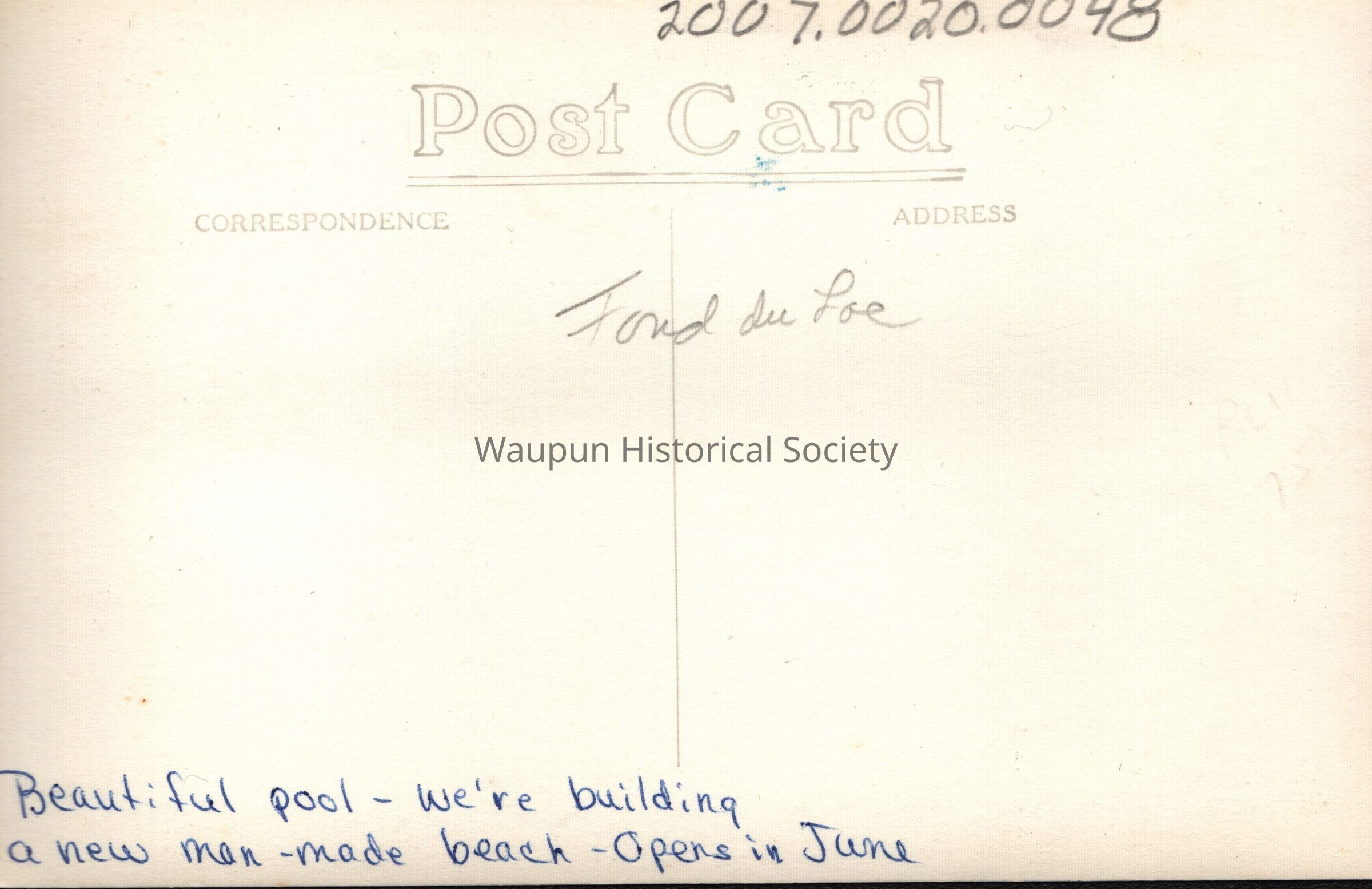 Postcard, Parks, Fond du Lac County Park Pool, #474-FEntry/Object ID