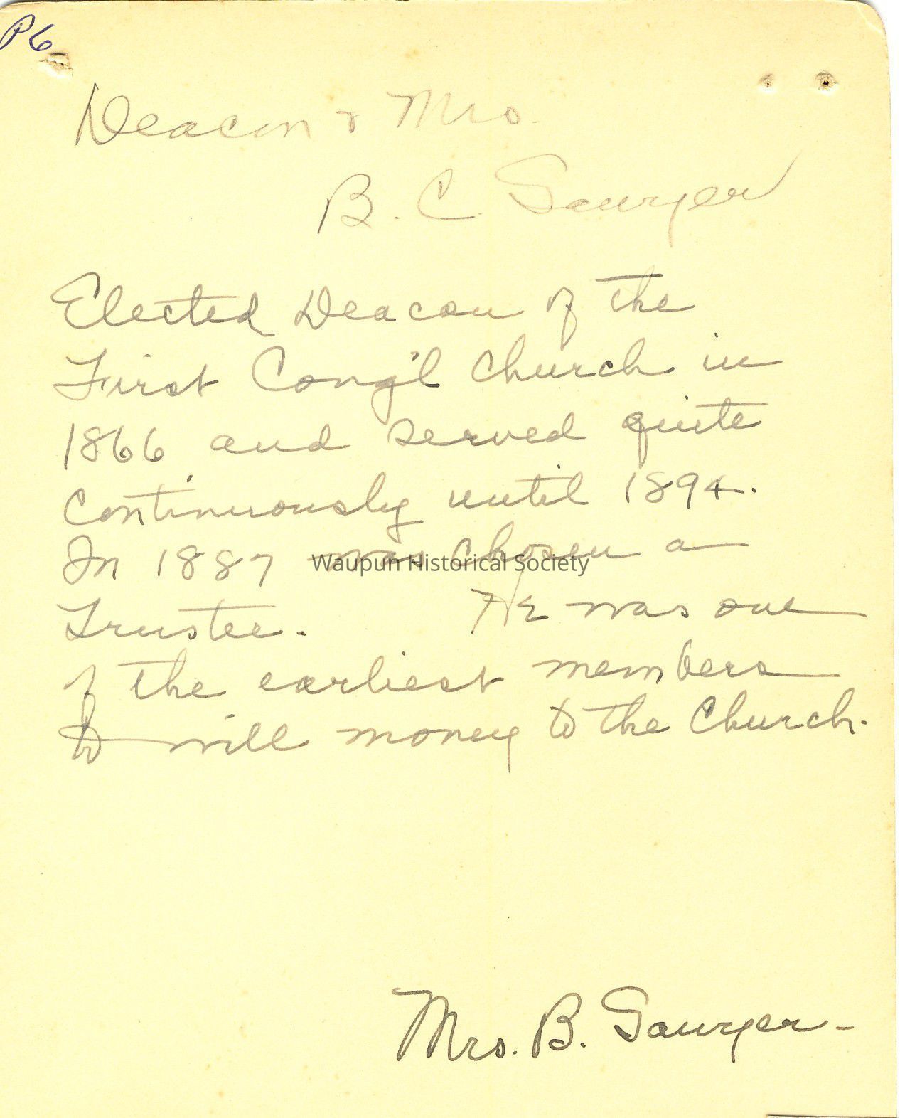 Cabinet Card, P. 6 Deacon & Mrs. B. C. Sawyer. From collection of Leona Nagler.