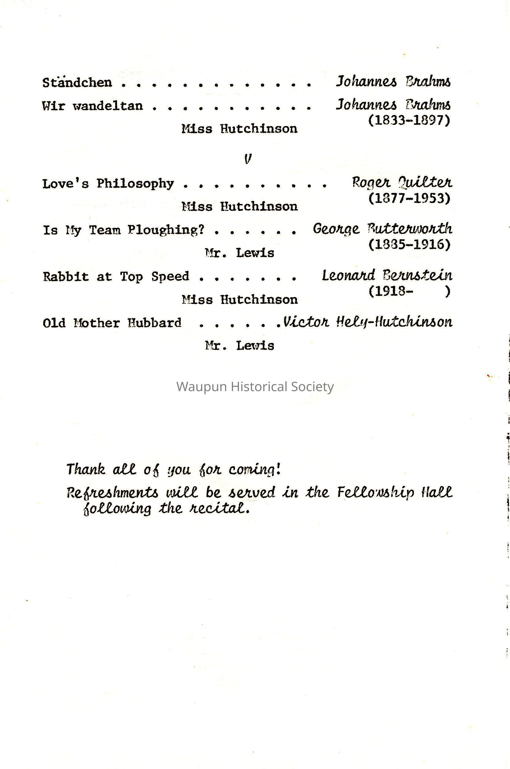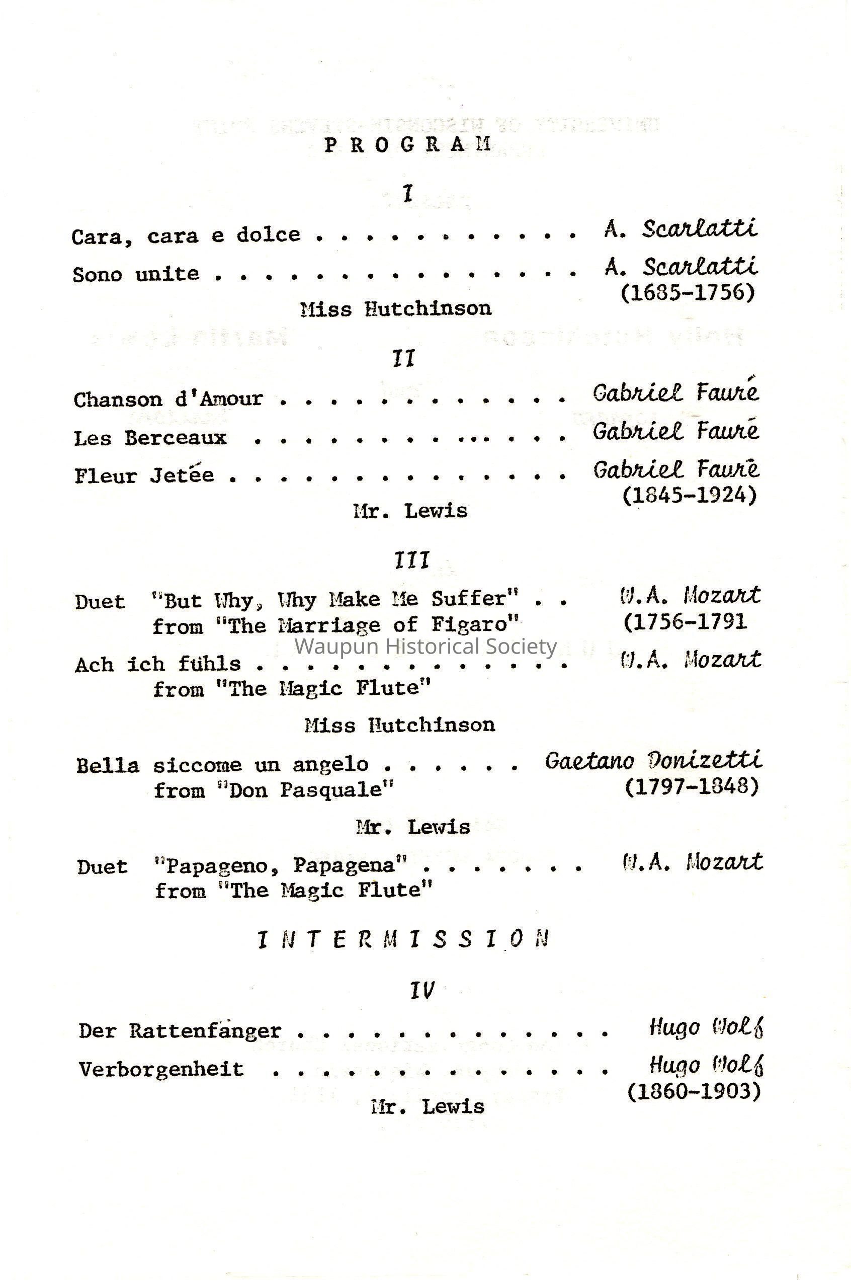 Program, UW-Stevens Point Music Department, Holly Ann Hutchinson and Martin LewisEntry/Object ID