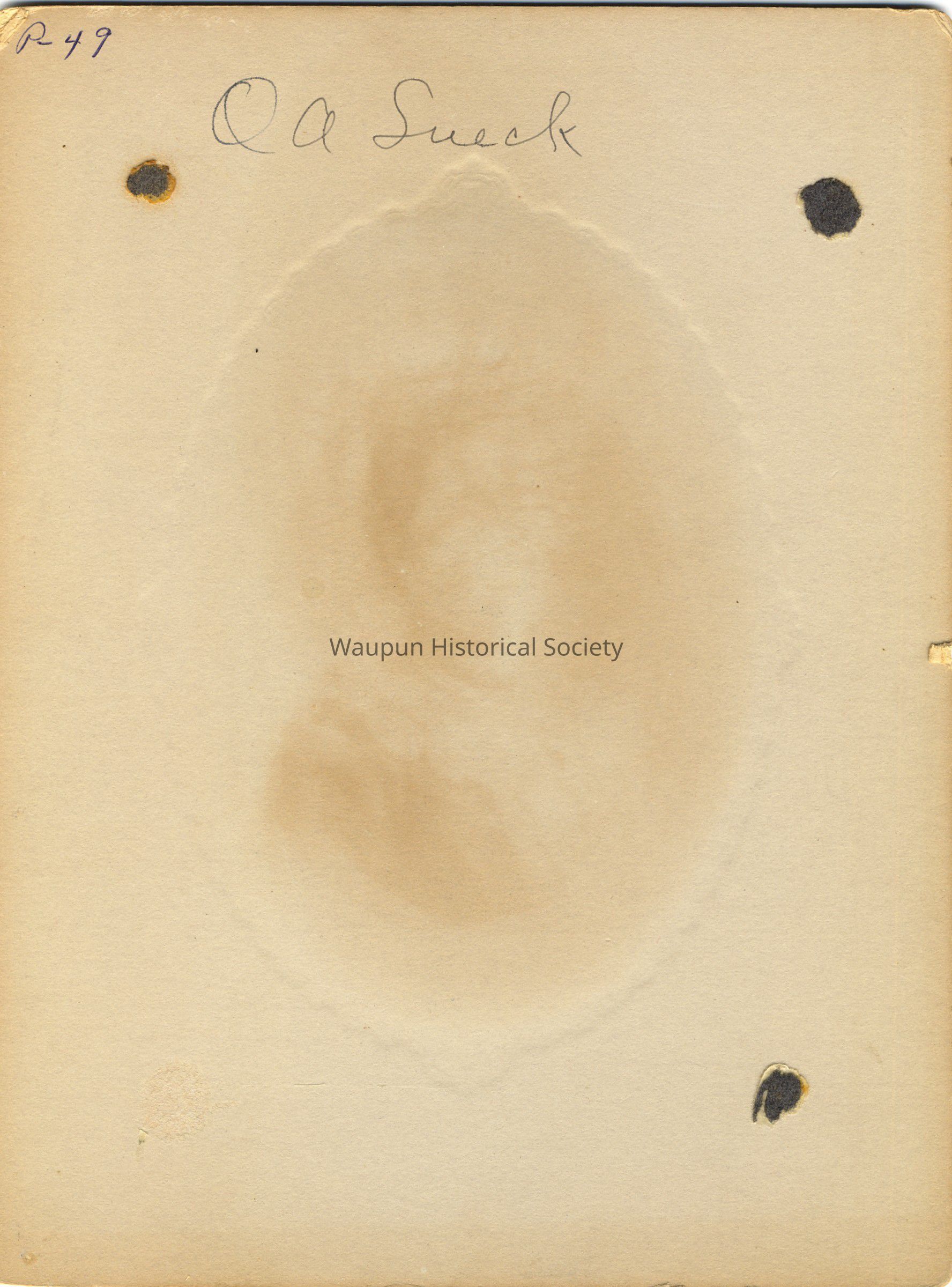 Portrait, Johnson, P. 49 from collection of Leona Nagler. We believe this to be O. A. Lueck as indicated on back of photo.Acquisition