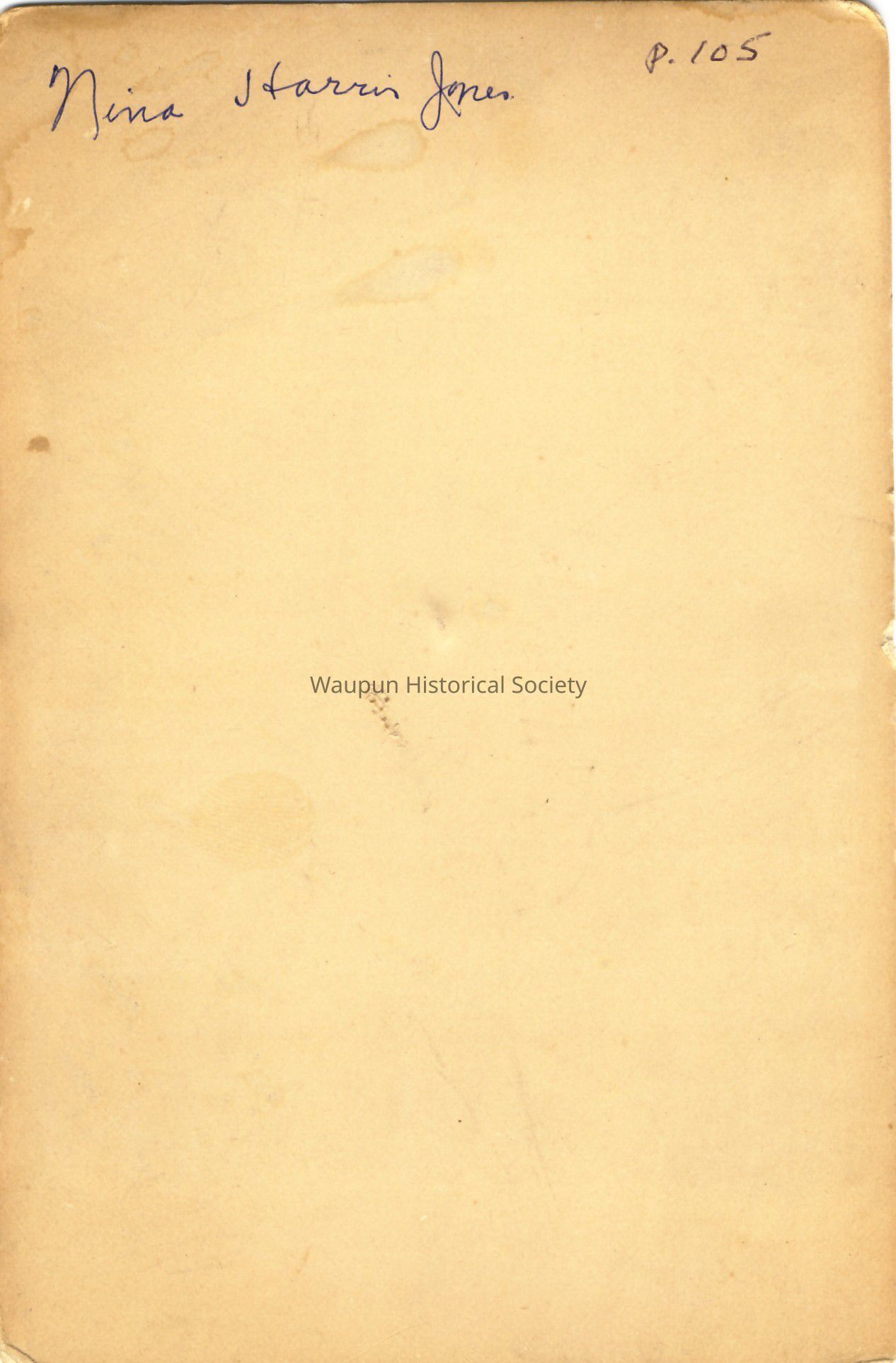 Cabinet Card, Johnson, P. 105 from collection of Leona Nagler. We believe this to be Nina Harris Jones as indicated on back of photo.Acquisition