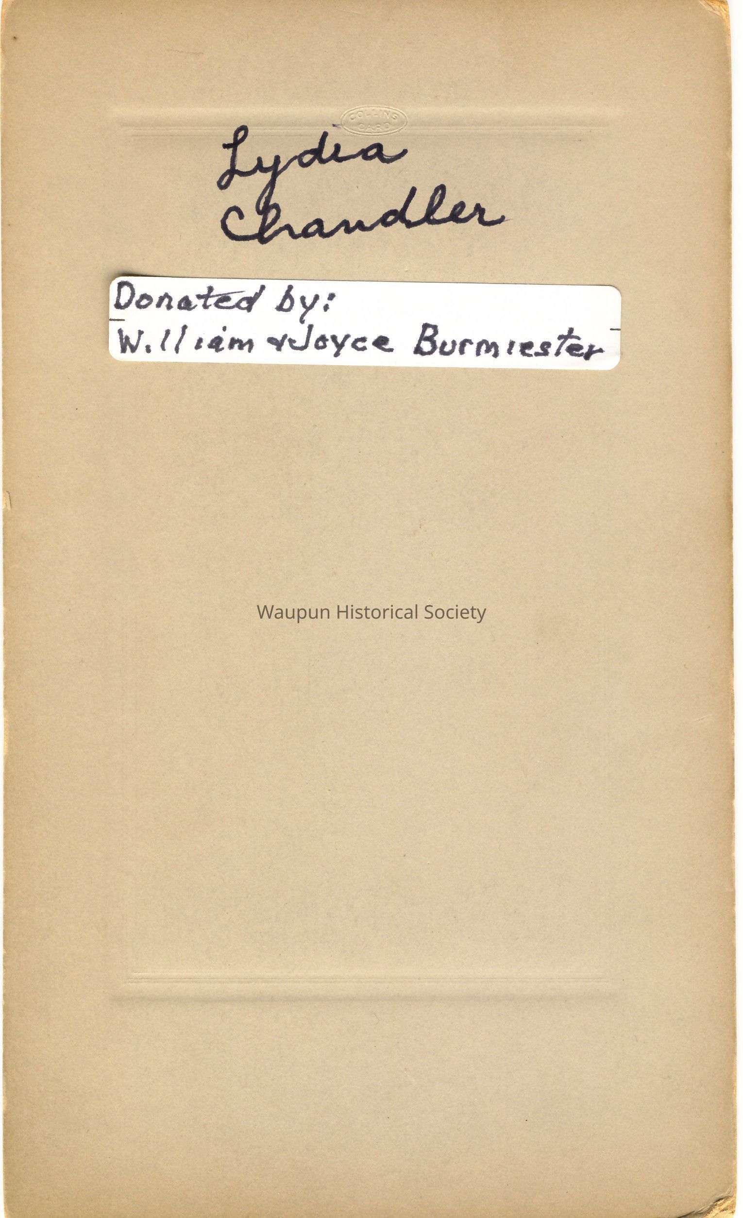 Portrait, Photo of Lydia Chandler donated by William & Joyce Burmeister. This was in the box from the collection of Leona Nagler.