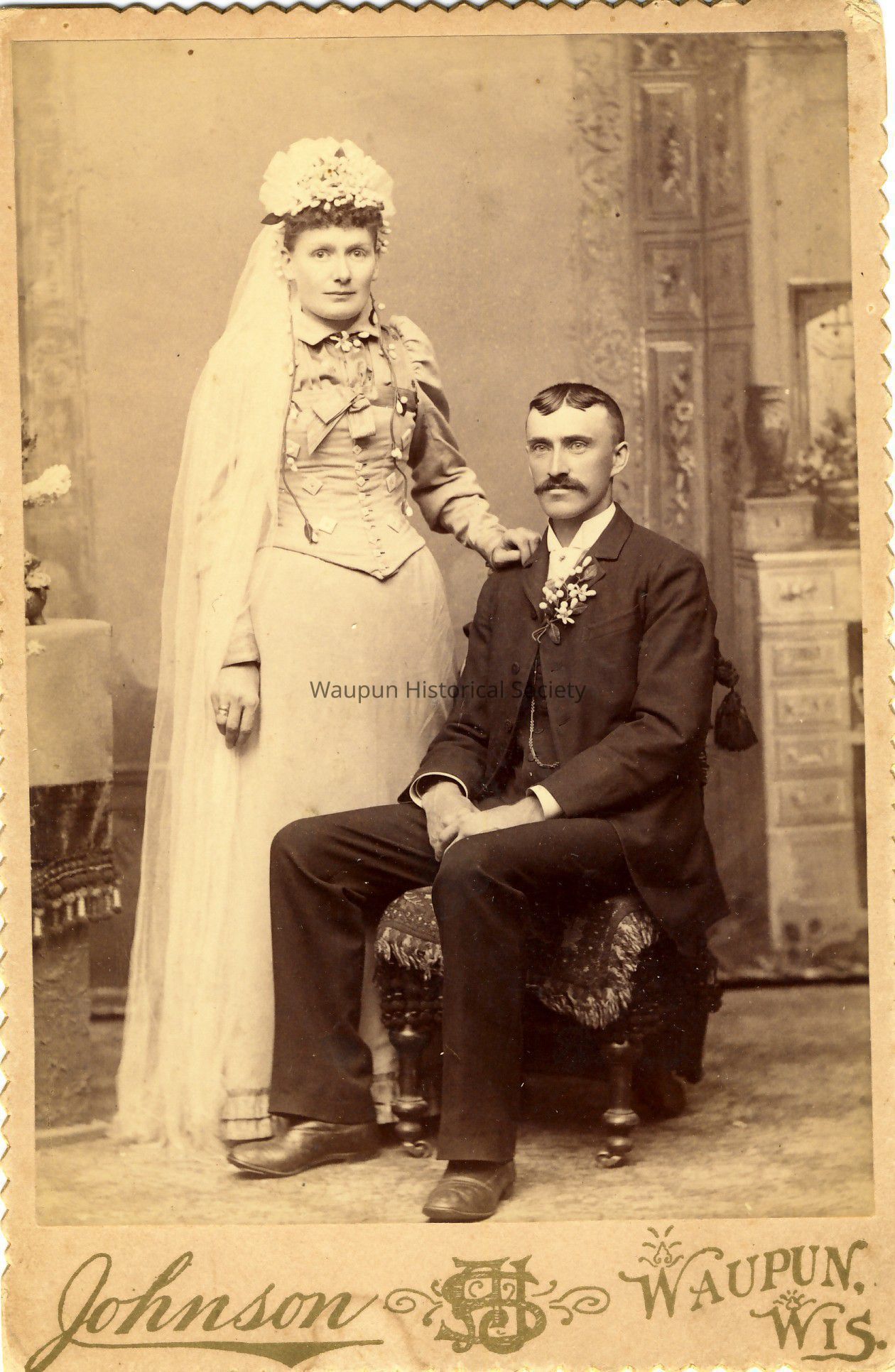 Cabinet Card, Johnson, Wedding photo of Lovila's father and mother found in box from collection of Leona Nagler.Acquisition
