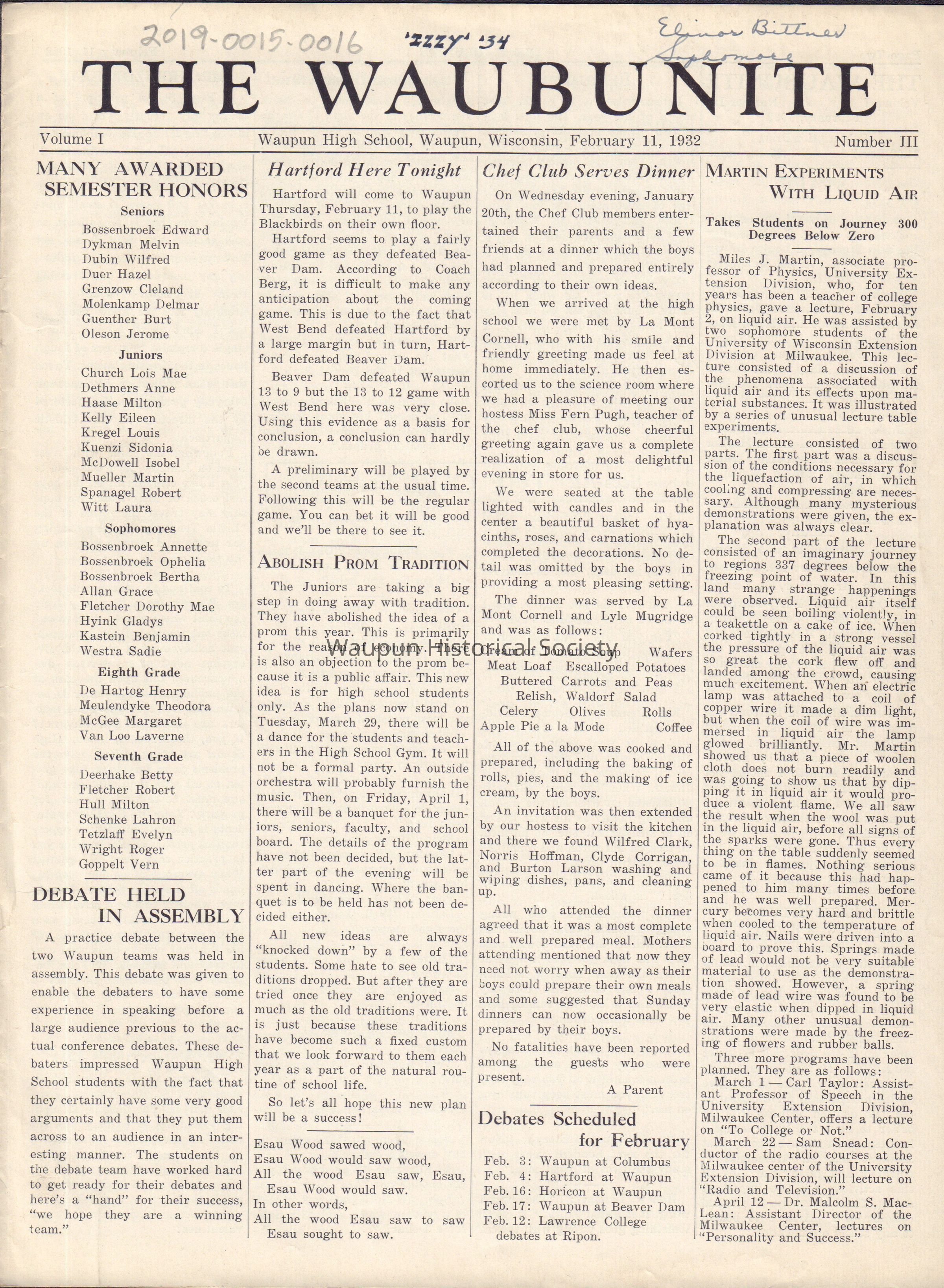 THE WAUBUNITE NEWS (FEB 11 1932) Waupun H.S newspaperAcquisition