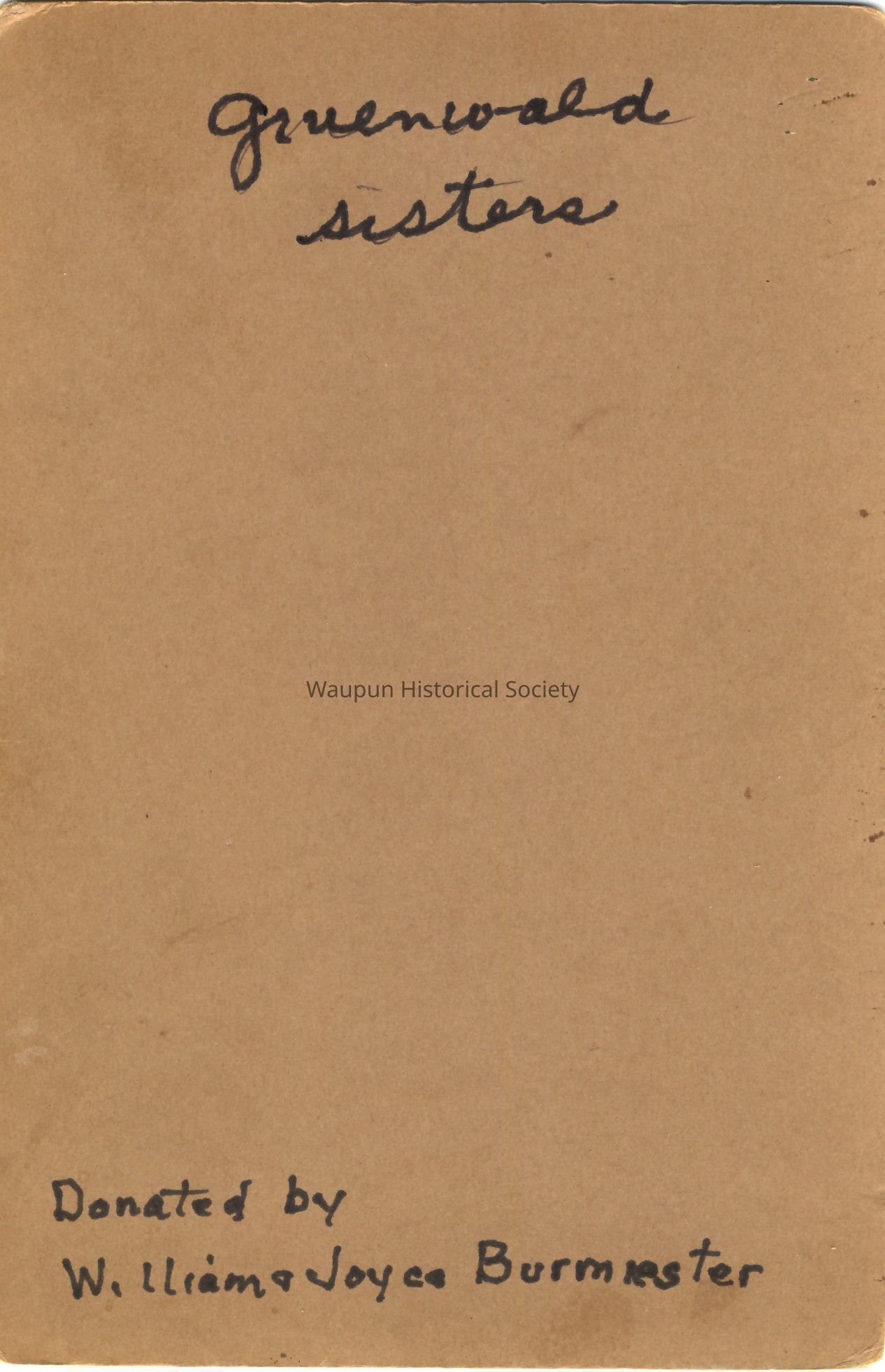 Cabinet Card, Back of photo indicated that this is Gruenwald sisters donated by William & Joyce Burmeister found in box from collection of Leona Nagler.Acquisition
