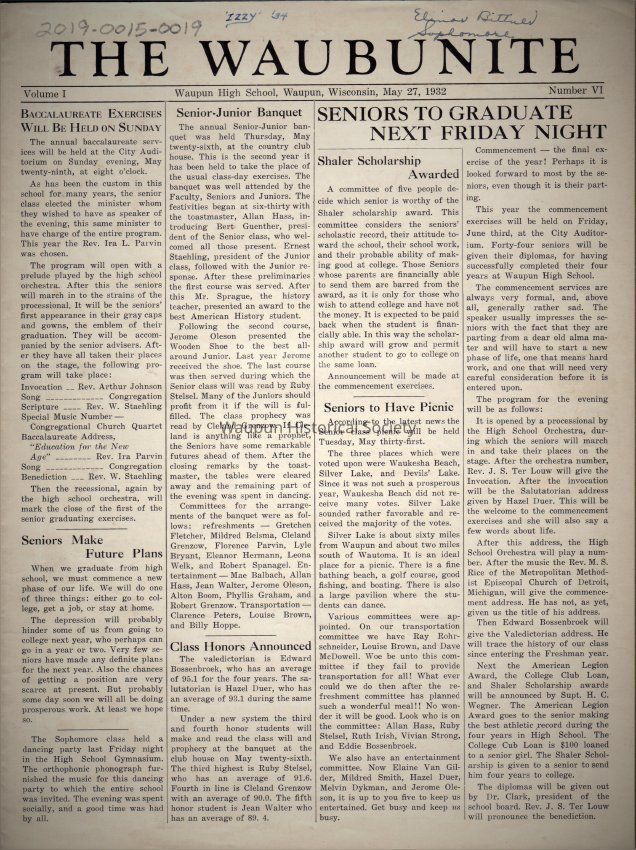 THE WAUBUNITE NEWS (May 27 1932) Waupun H.S newspaperAcquisition