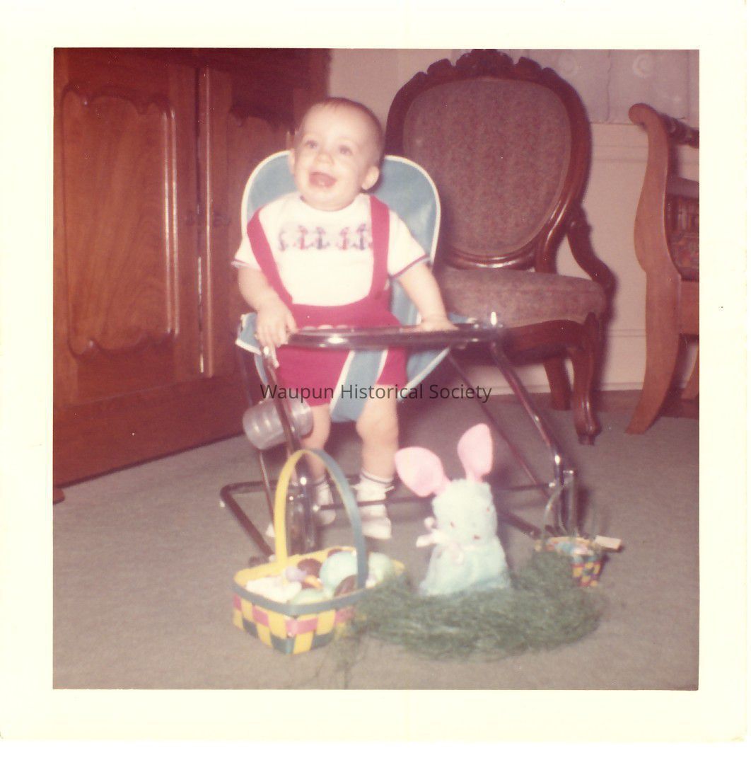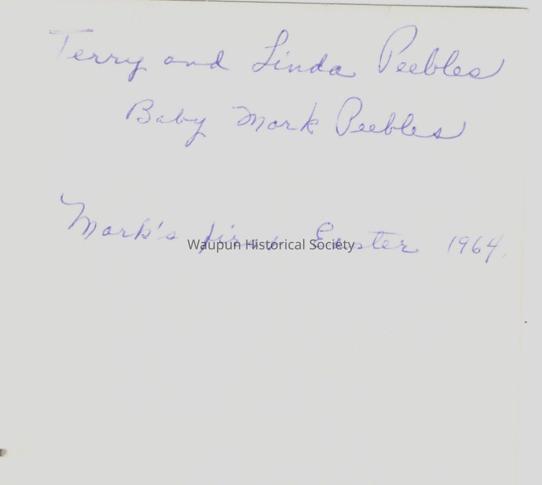 Photograph, Photos of Terry, Linda and baby Mark Peebles which was Mark's first Easter, (1964), he was 7 months old. Mark was born September 5, 1963. Mark's middle name is Stuart. This photo was found in box from collection of Leona Nagler.Acquisition