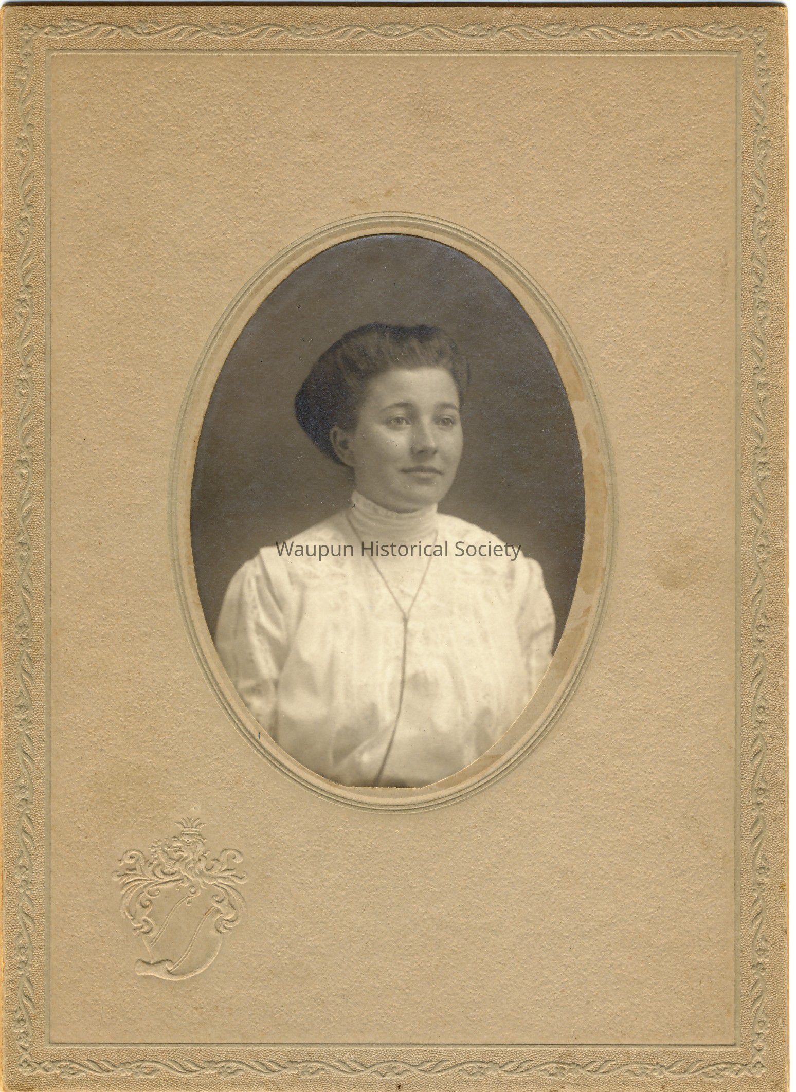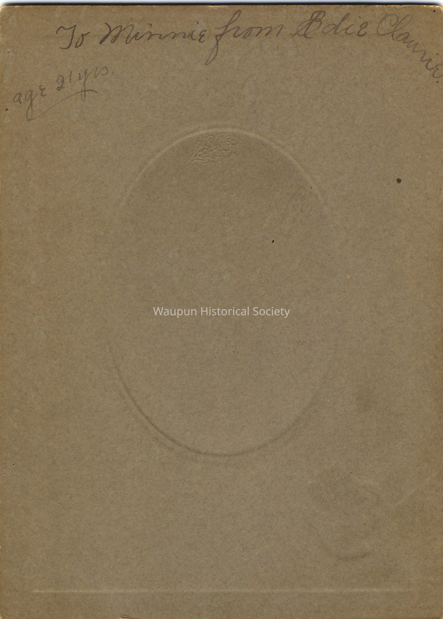 Portrait, From box with collection of Leona Nagler. Back of photo has printed - To Minnie from Edie Claurie, age 21 years.Acquisition