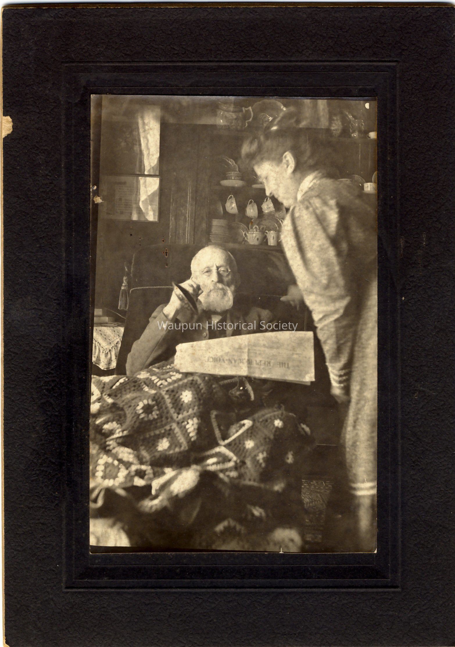 The newspaper which John Mosher appears to be reading is The Repulican Voice.Acquisition