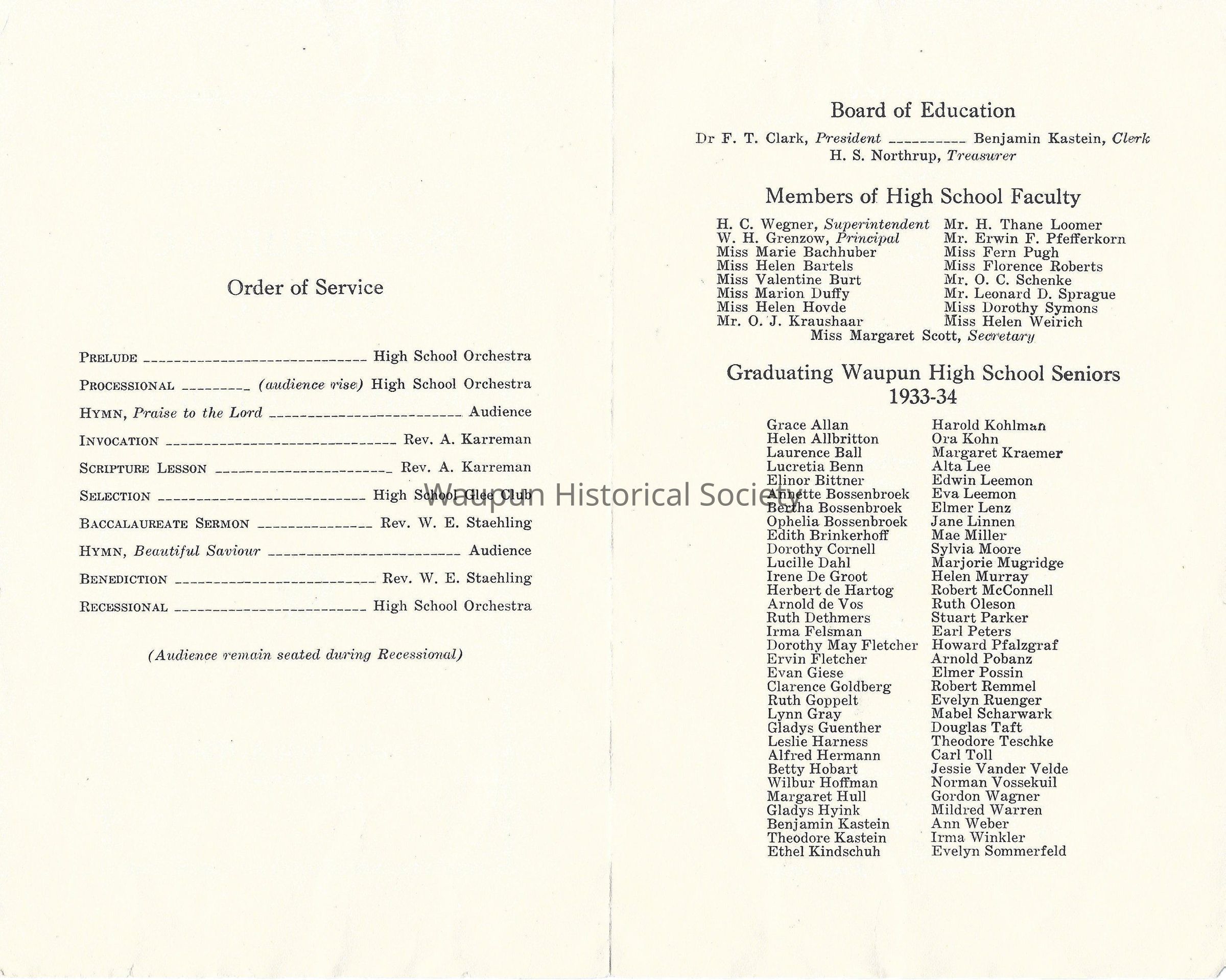 Waupun High School Baccalaureate Service ProgramEntry/Object ID
