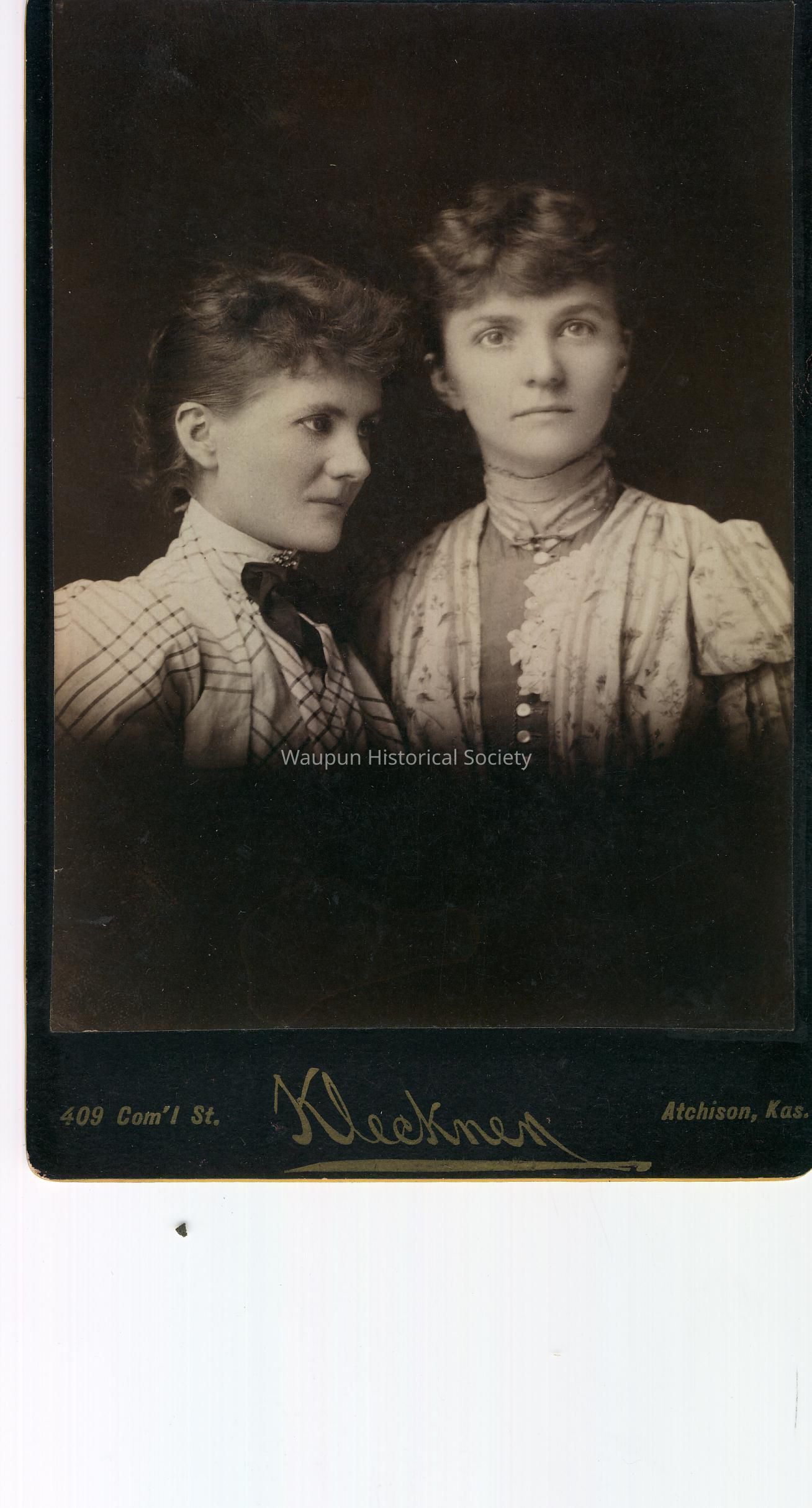 Written on the back that it indicated that these two women were Anna Stockwell and Ida Stockwell. Photo taken at Kleckner's , 409 Com'l St. Atchison, Kansas.Acquisition