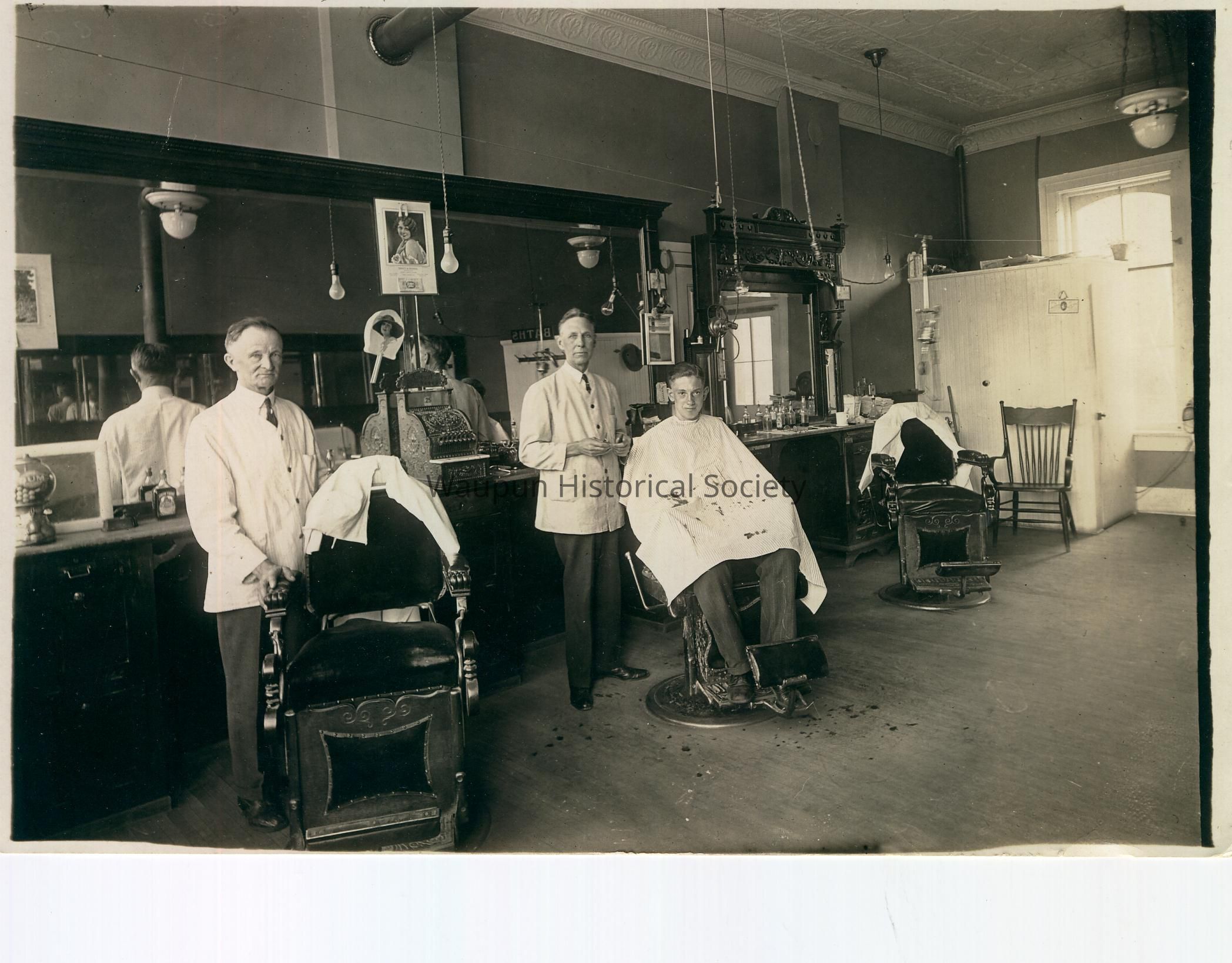 Written on the back indicated that this is a picture of Fuller's 4 chair Barber shop, in Waupun Wi. In the photo is Evert Lockhorst, William Hayes and Tom Fuller.Acquisition