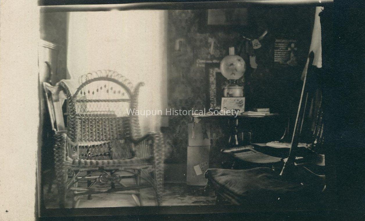 Written on the back indicated that this picture is of Tom and Anna Fuller's home inside. It was located at 17 S. Watertown St. Waupun, WI.Acquisition