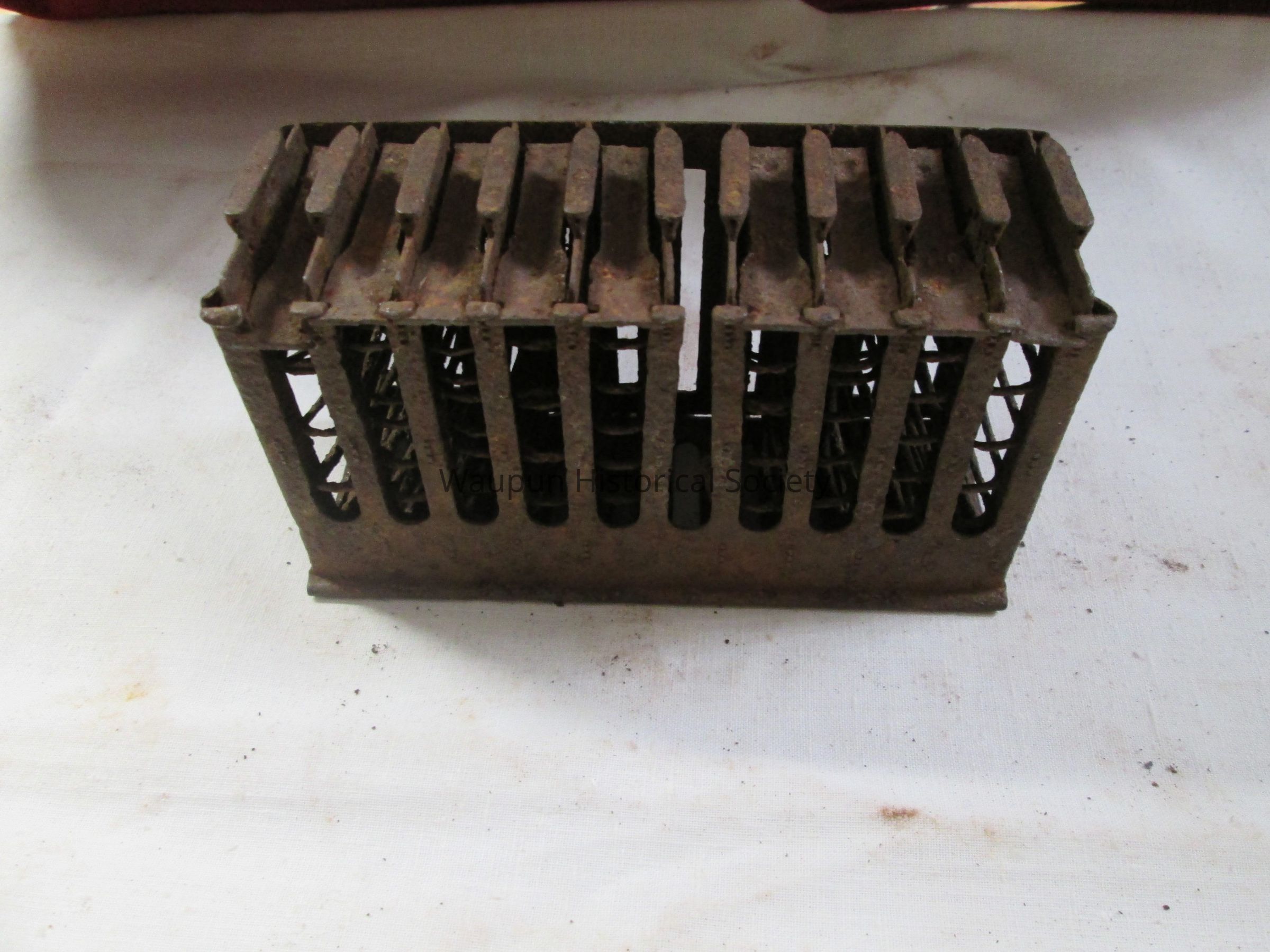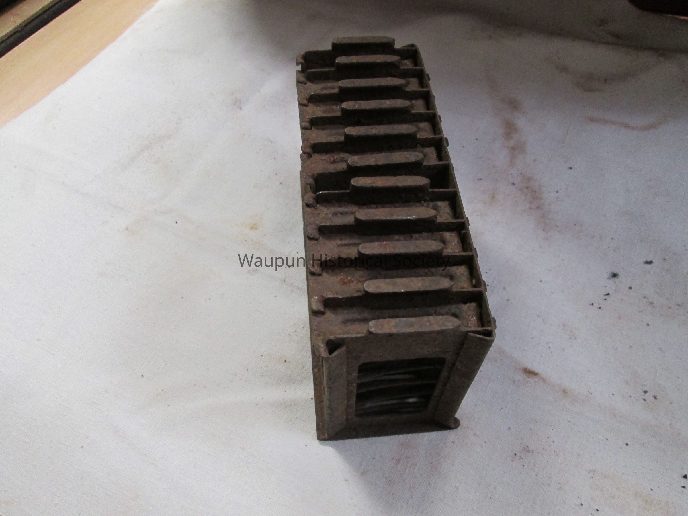 Small rusted metal square spring loader box. Found on WW1 battlefield.Acquisition