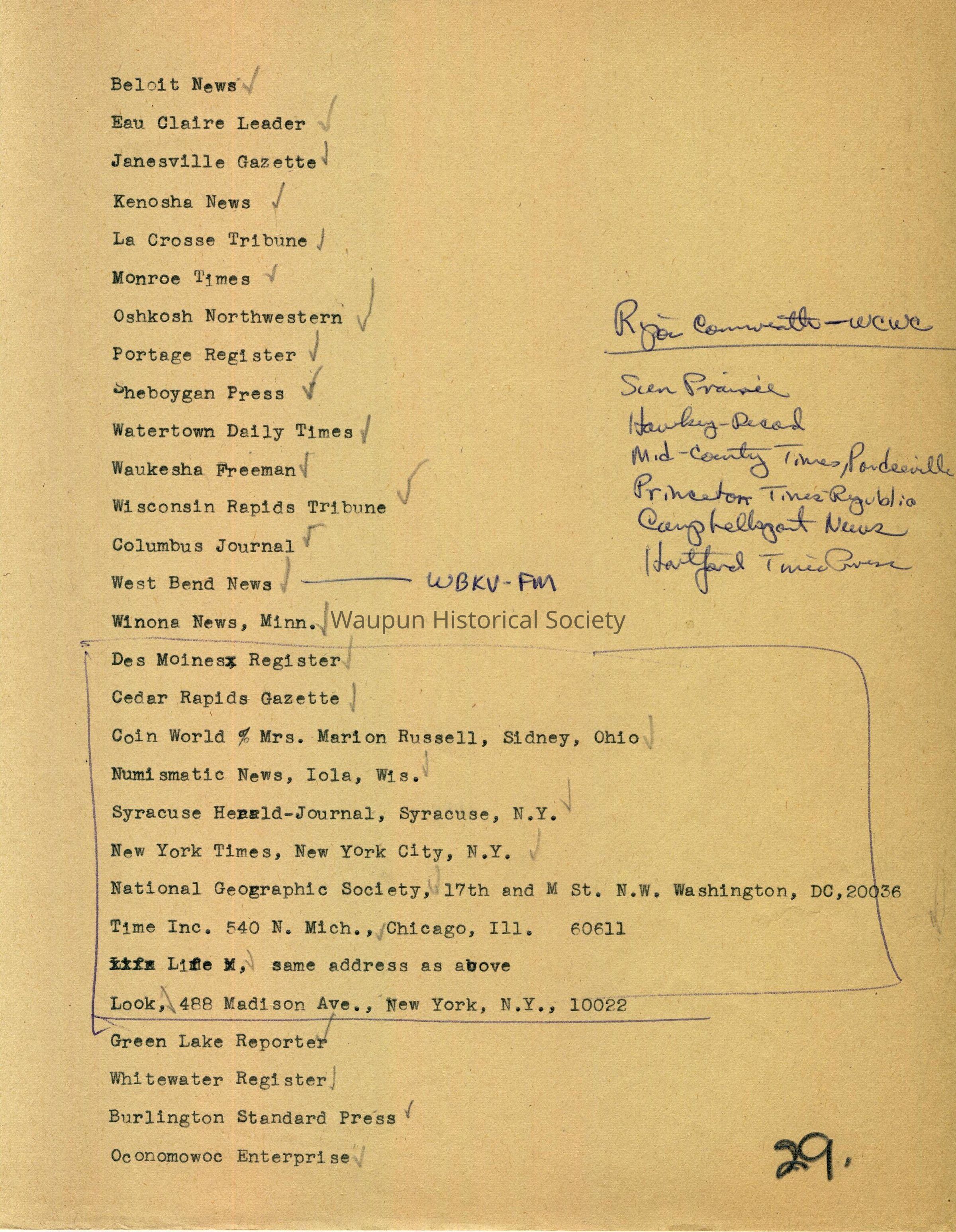 Waupun's 125th Jubilee, News and Radio Stations, 1964Entry/Object ID