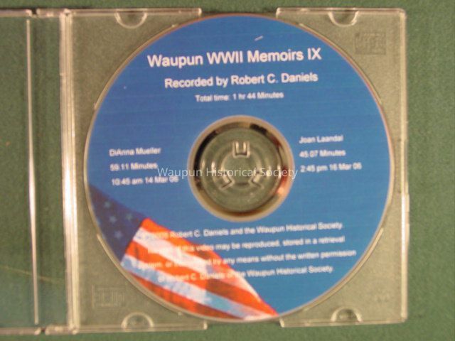 WWII Recordings: Recorded interviews / memoirs of Waupun WWII Veterans, recorded by Robert C. Daniels and donated to the Waupun Historical Society.Originals are stored at City Hall, Copies are stored on main floor near DVD player.
