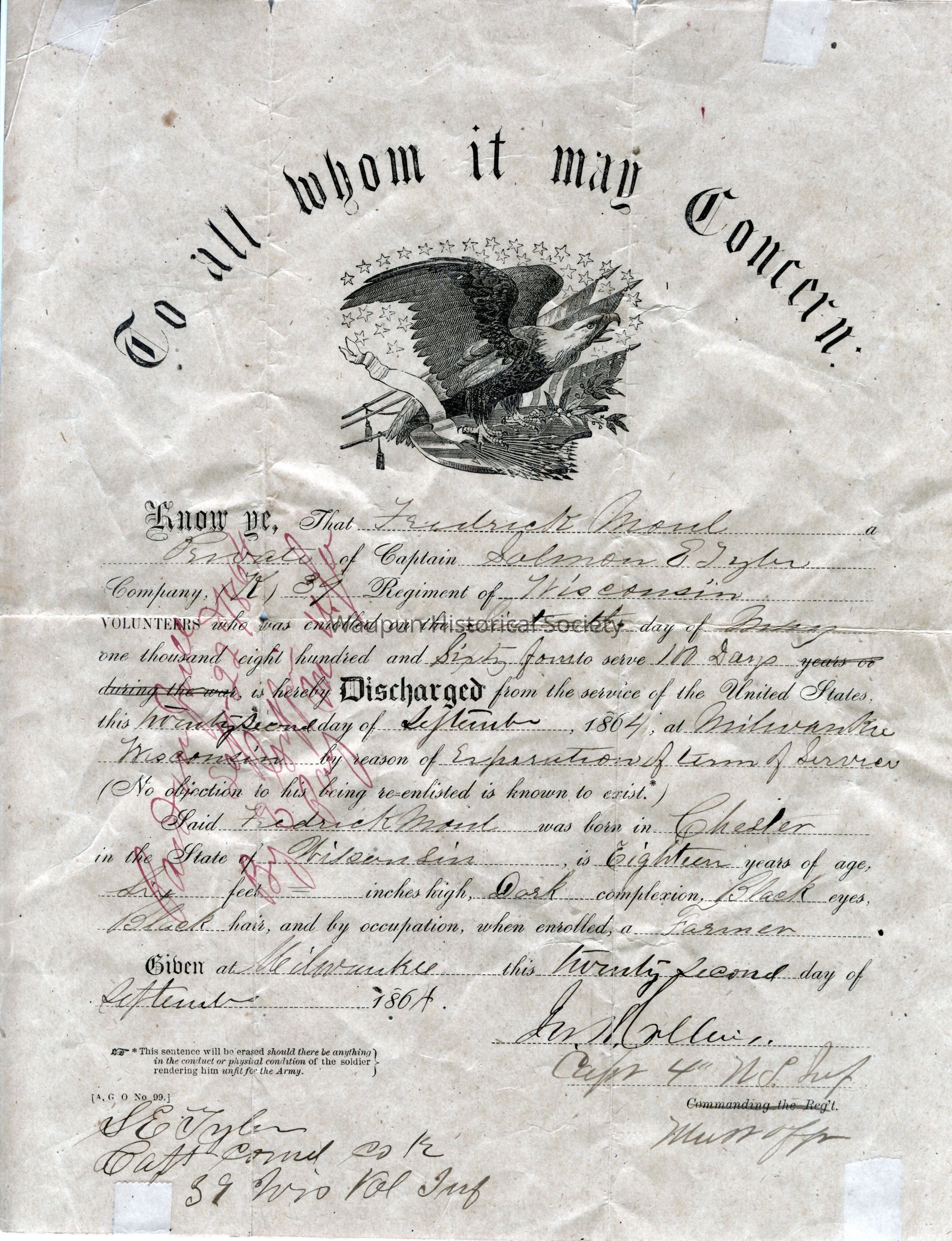 Civil War Collection. Discharge Papers, Dated Sept. 22, 1864Acquisition
