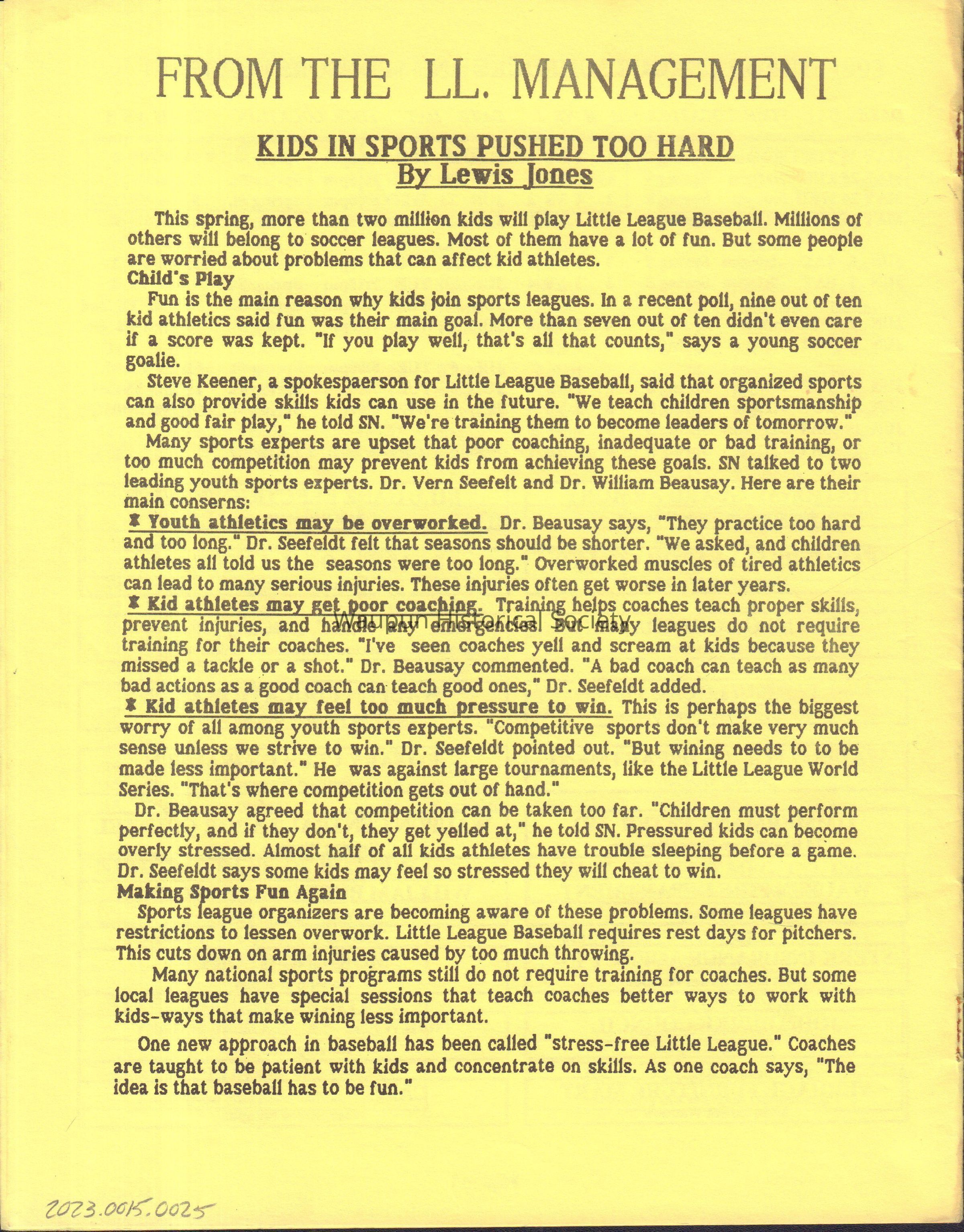 Program, 1993 Little League