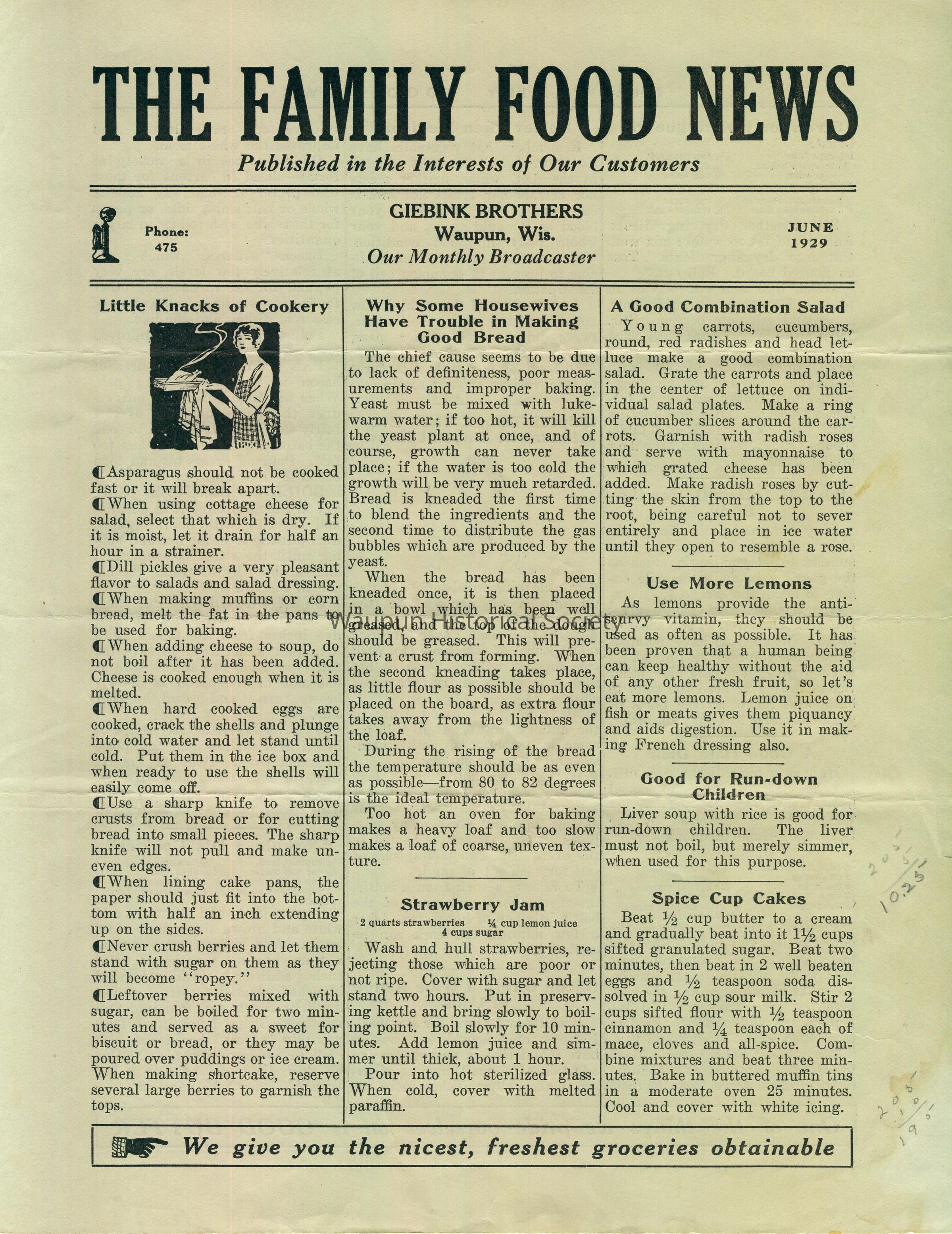 Giebink Brothers Grocery Store, Newsletter, June 1929Entry/Object ID