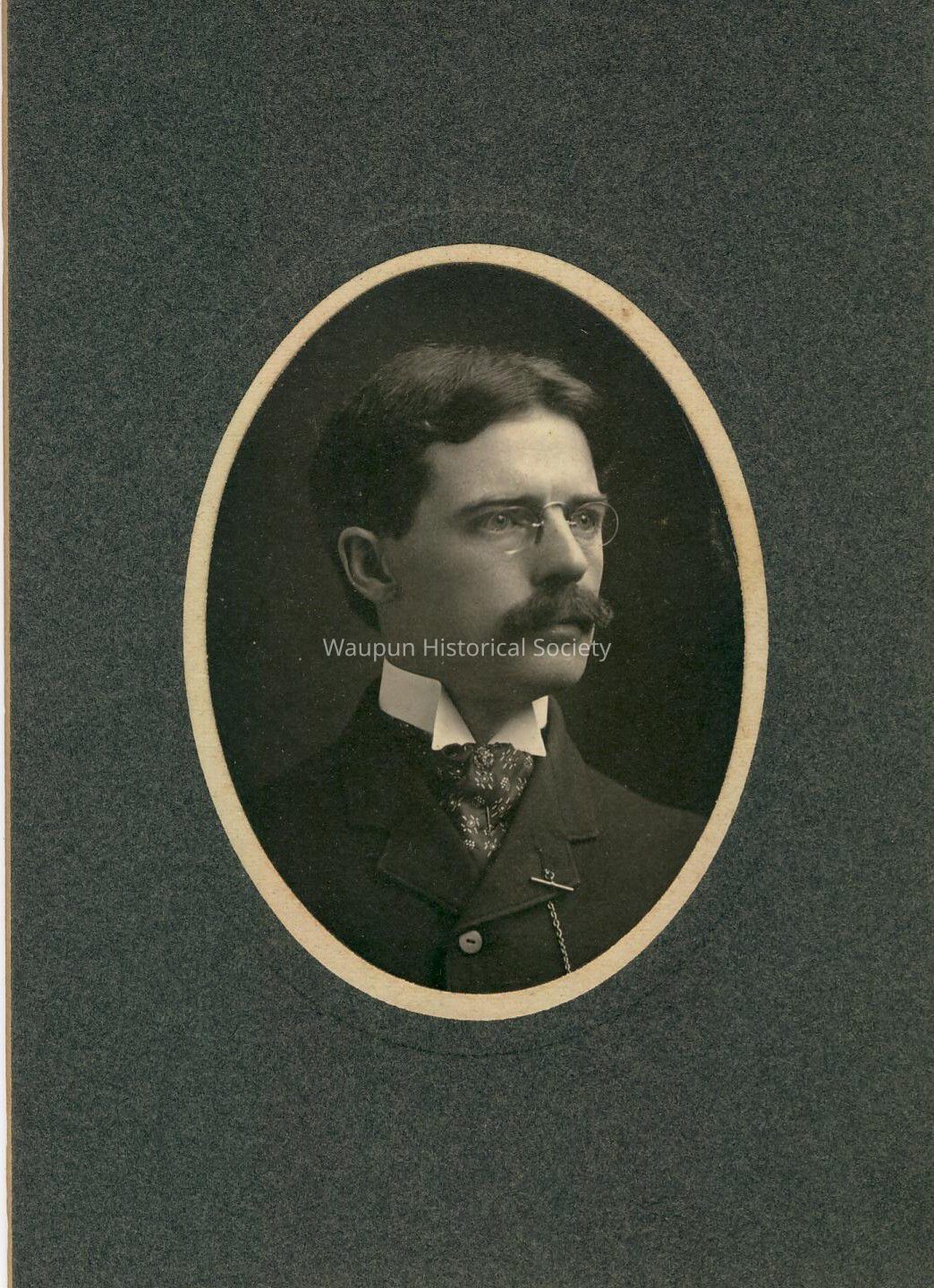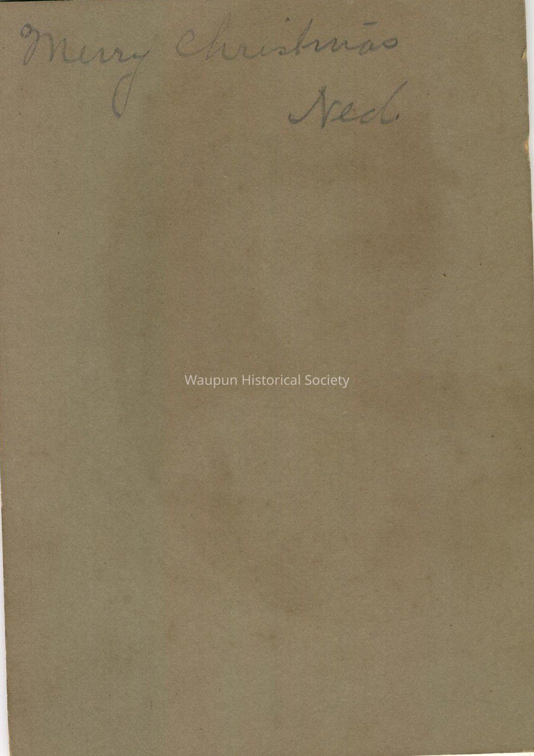 Portrait, found in an unidentified box in the Waupun Heritage Museum work room. Please contact the Waupun Heritage Museum at 22 S. Madison St. Waupun, WI 53963. Phone No. 920-324-7931. Written on the back of this picture says Merry Christmas, Ned. So this person is persumed as Ned.Acquisition