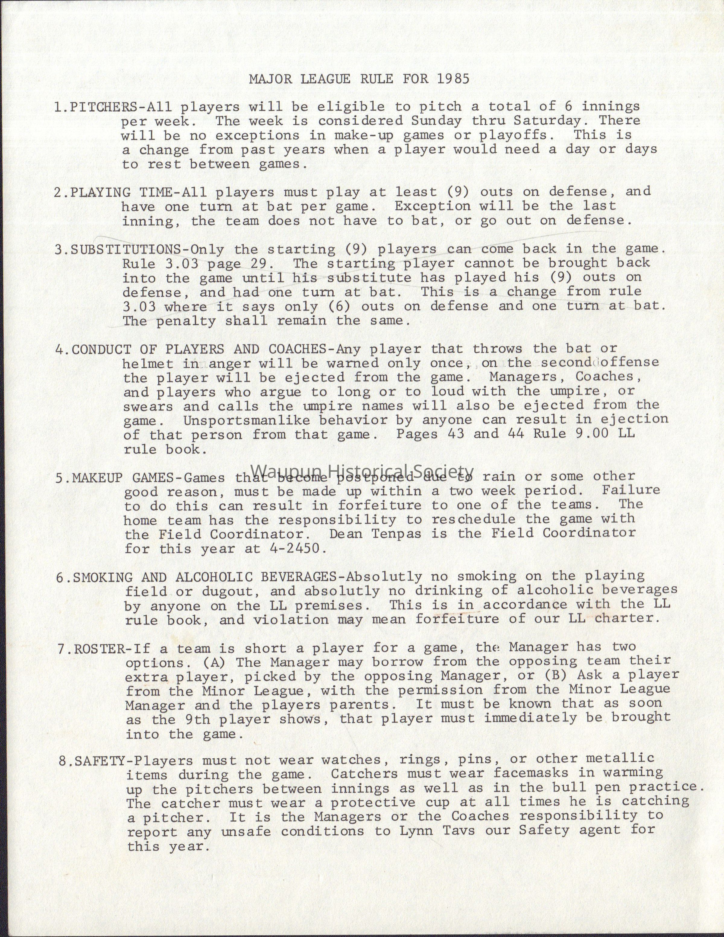 Rules Major League, 1985