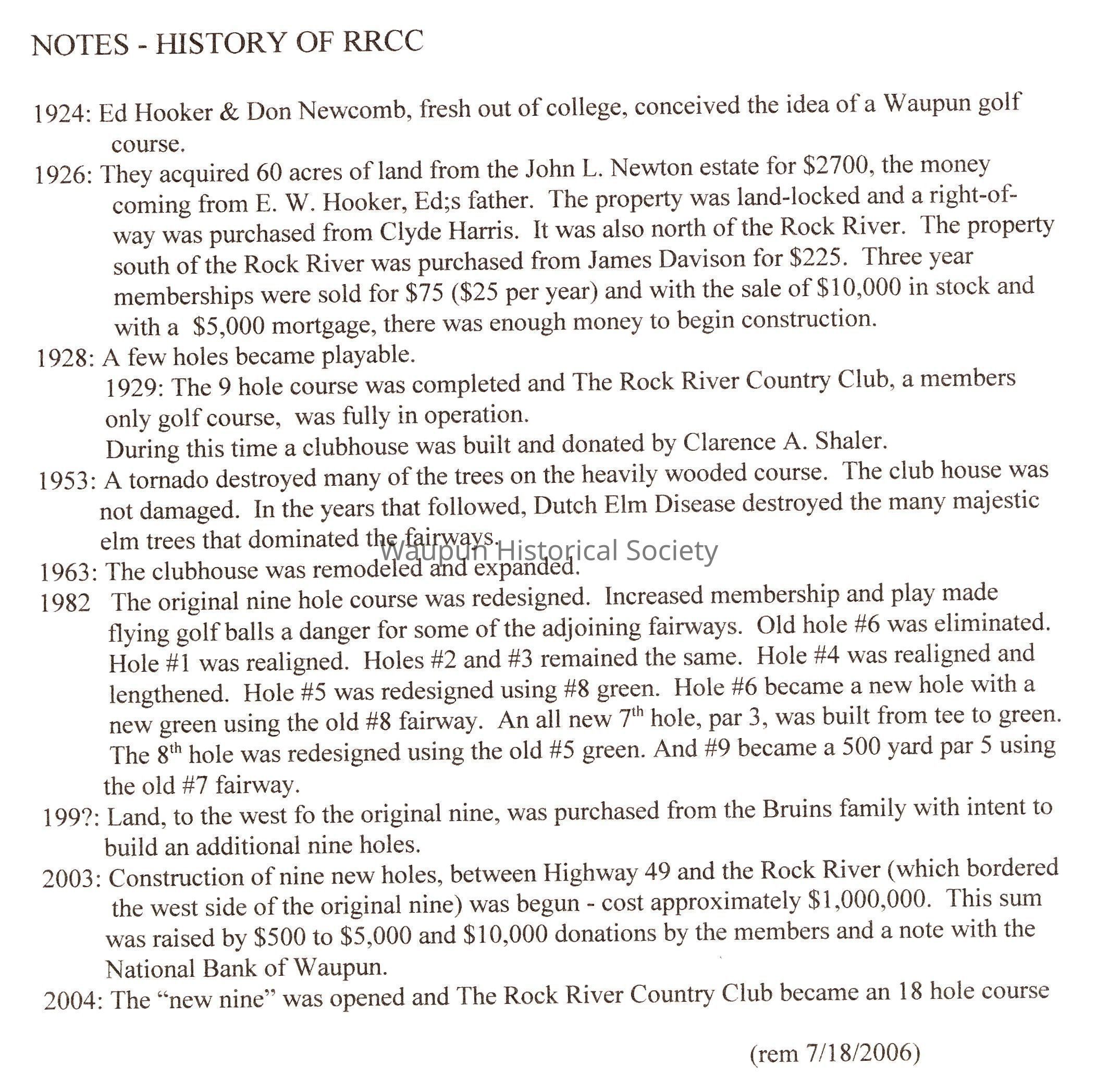 2004: The "new nine" was opened and The Rock River Country Club became an 18 hole course