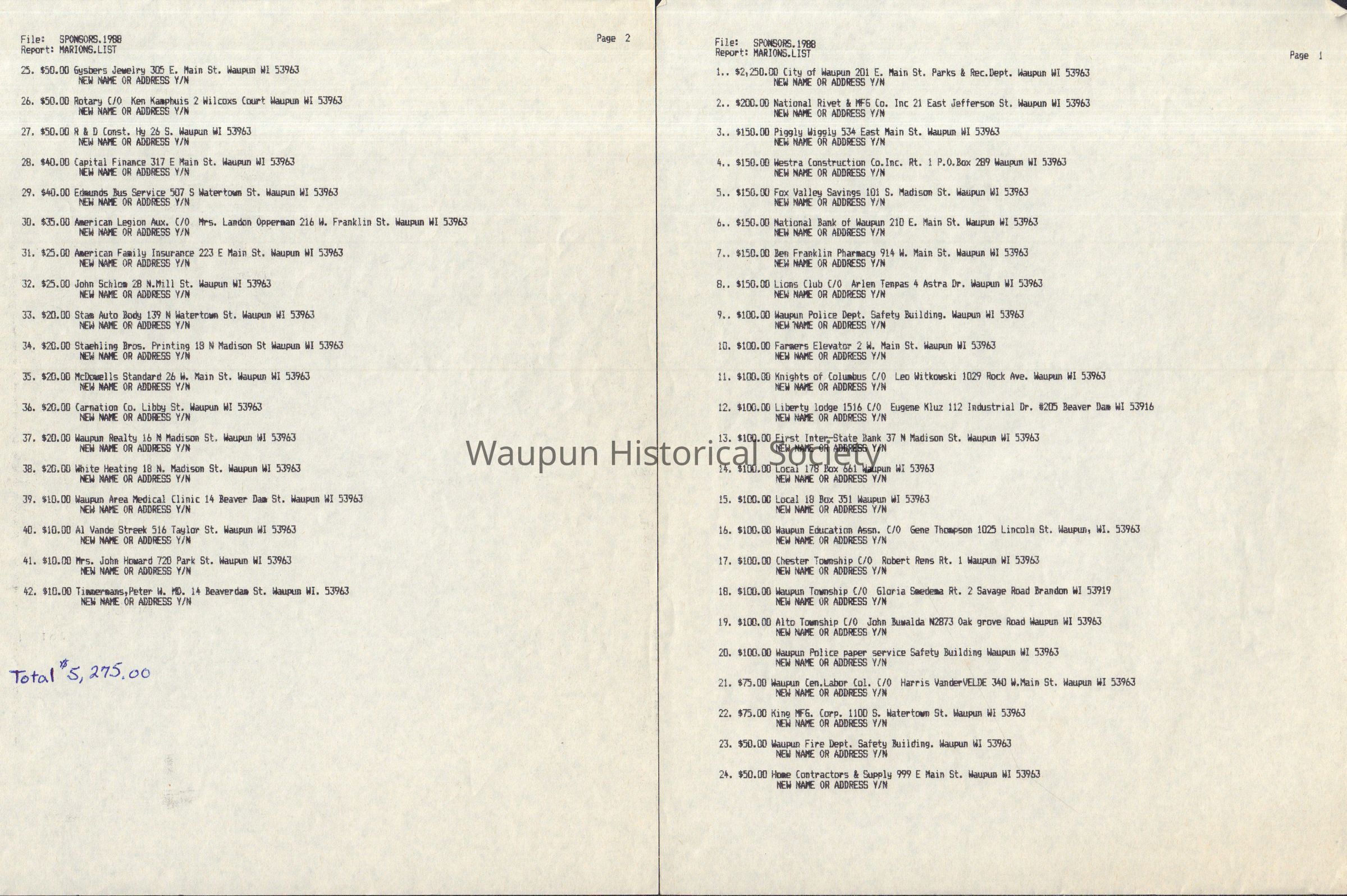 List of Sponsors, 1988