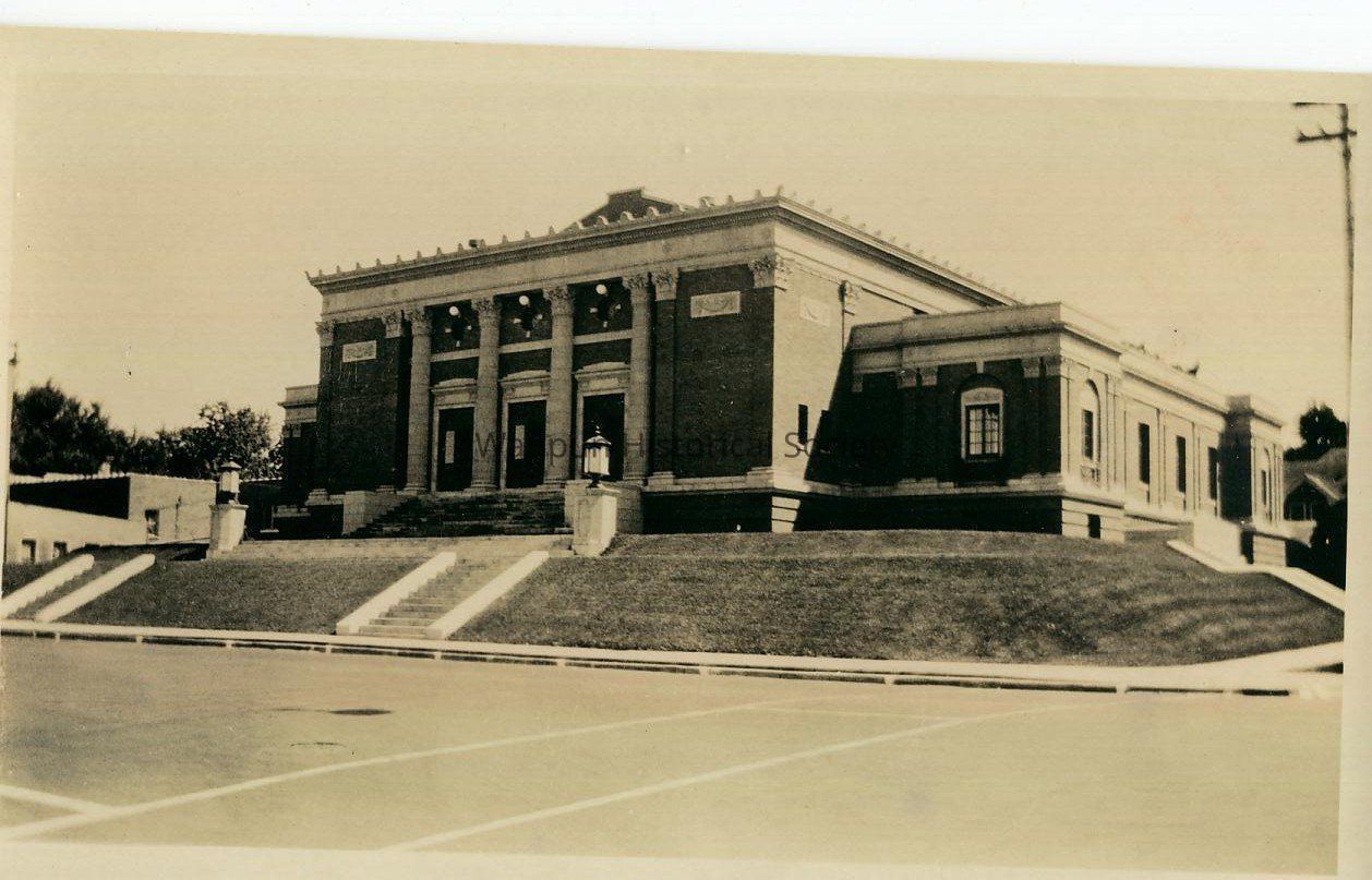 Photograph, City Hall, and Auditorium. Photo found in an unidentified box in the Waupun Heritage Museum work room. Please contact the Waupun Heritage Museum at 22 S. Madison St. Waupun, WI 53963. Phone No. 920-324-7931. This is a picture of the Waupun City Hall. Notice that the Waupun Statue has not been placed. Notice also the large lantern lights in front. This photo was very recently after the building completion. On the back says that it was taken on 9/2/28.Acquisition