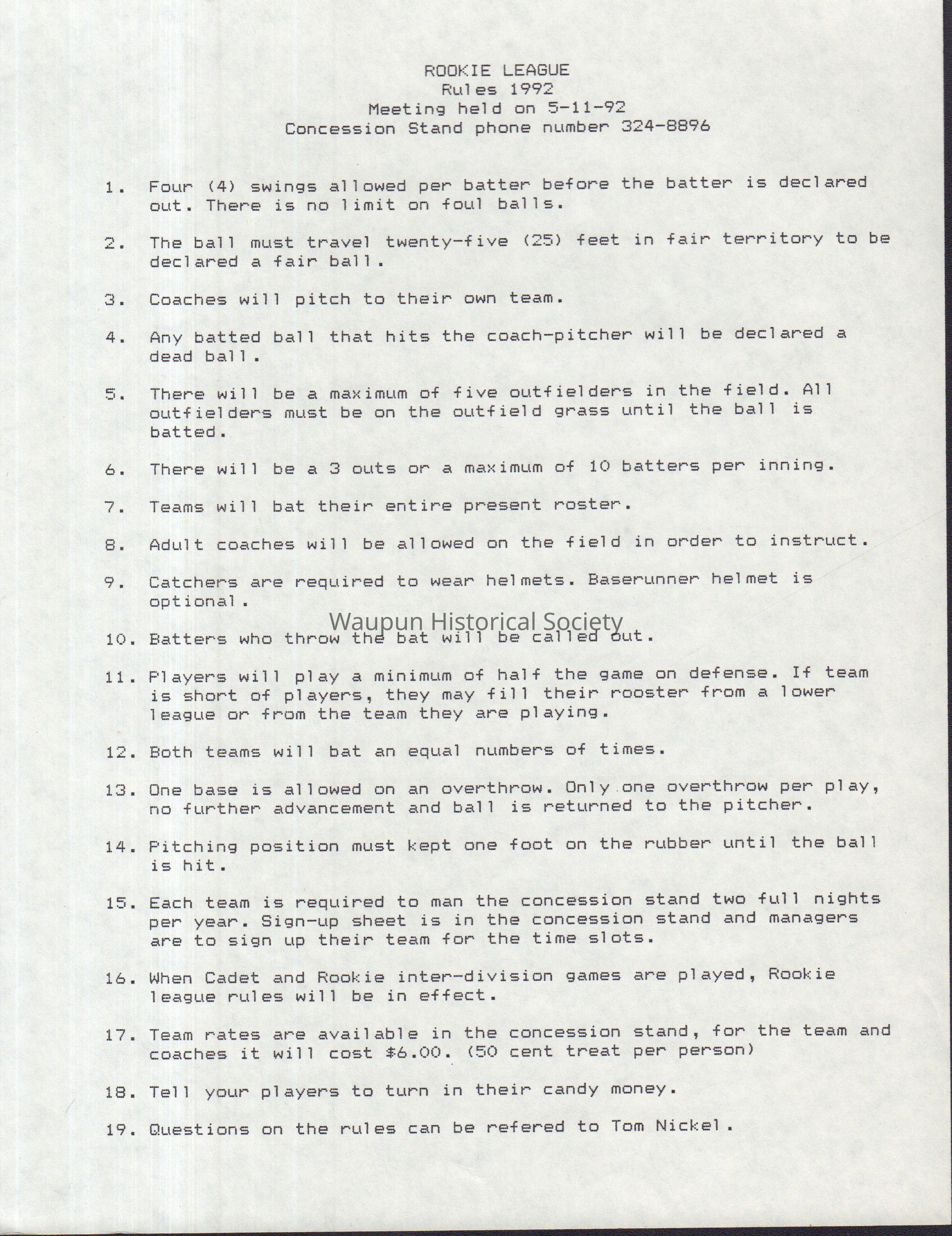 Rules Rookie League, 1992