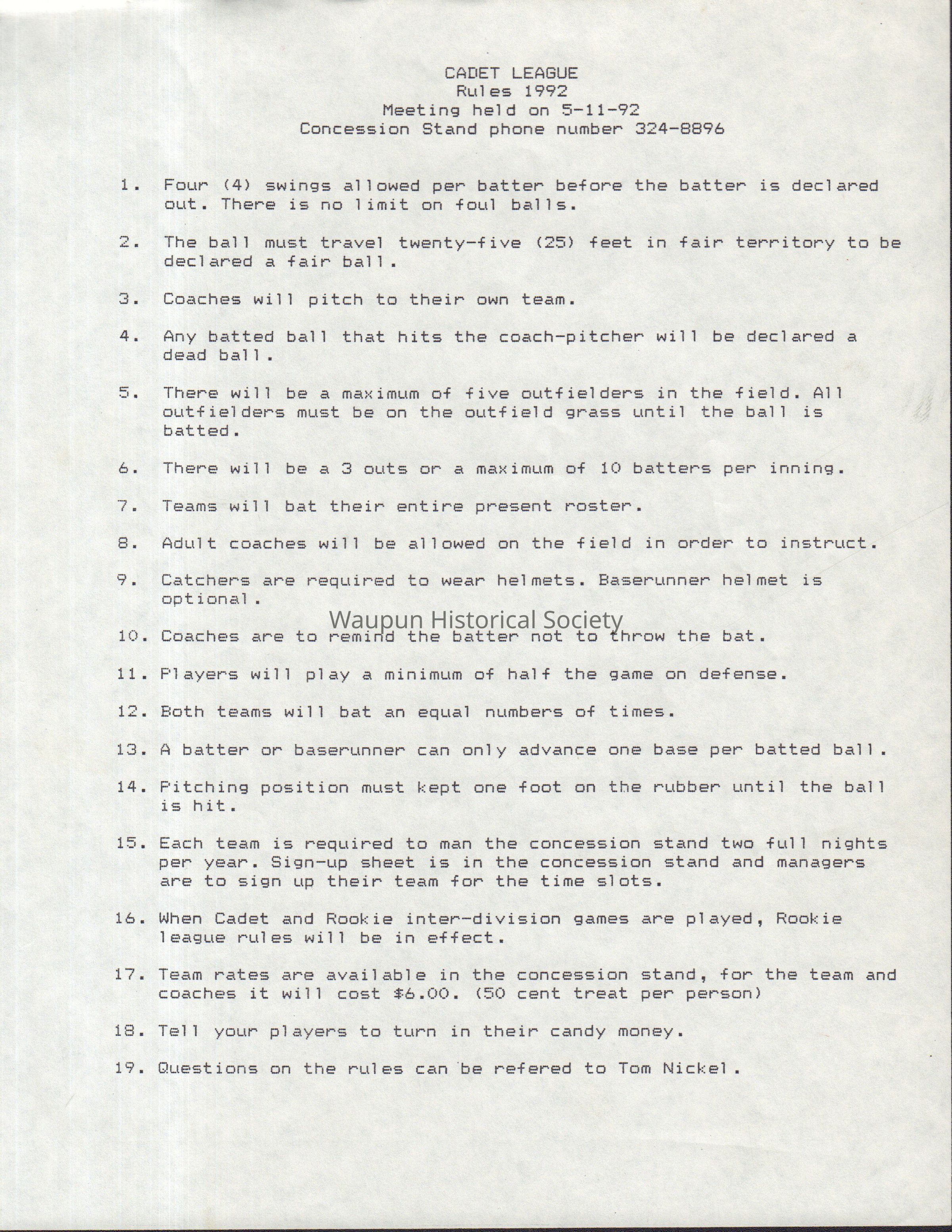 Rules Cadet League, 1992