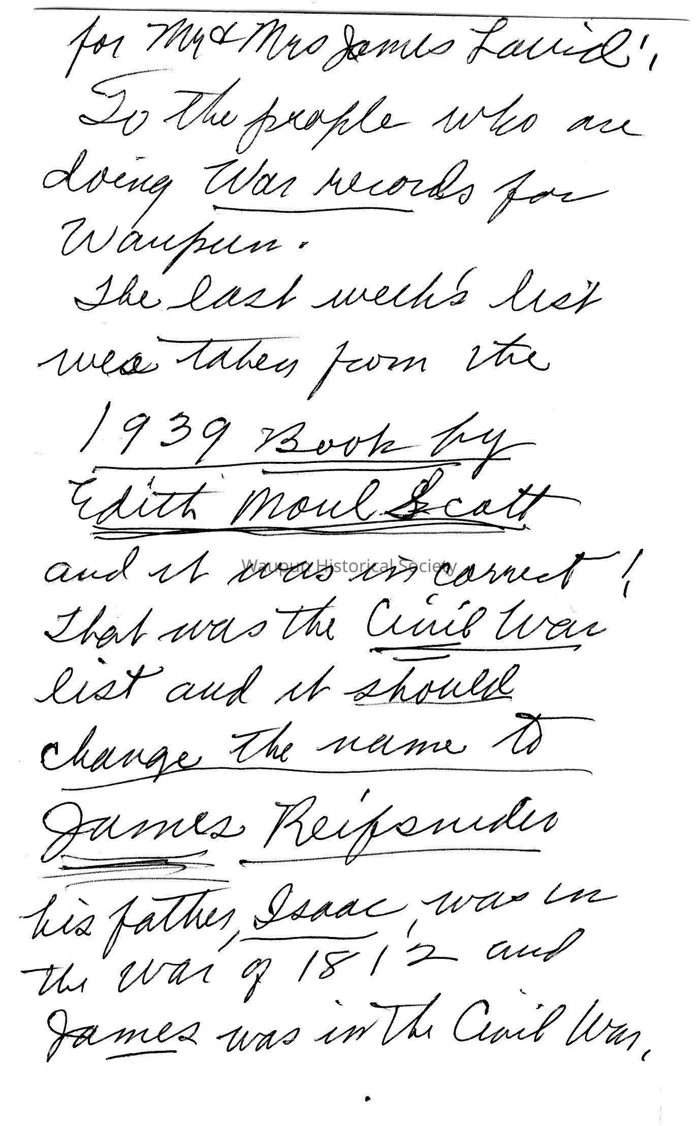 The late Edith Moul Scott wrote a booklet for the 1939 Waupun Centennial and it had the wrong list for the War of 1812.