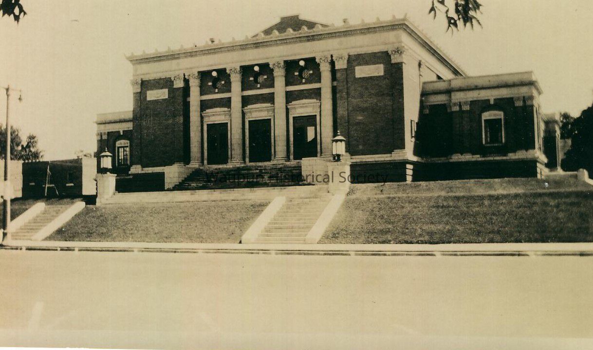 Photograph, City Hall, and Auditorium. Photo found in an unidentified box in the Waupun Heritage Museum work room. Please contact the Waupun Heritage Museum at 22 S. Madison St. Waupun, WI 53963. Phone No. 920-324-7931. This is a picture of the Waupun City Hall. Notice that the Waupun Statue has not been placed. Notice also the large lantern lights in front. This photo was very recently after the building completion. On the back says that it was taken on 9/2/28.Acquisition