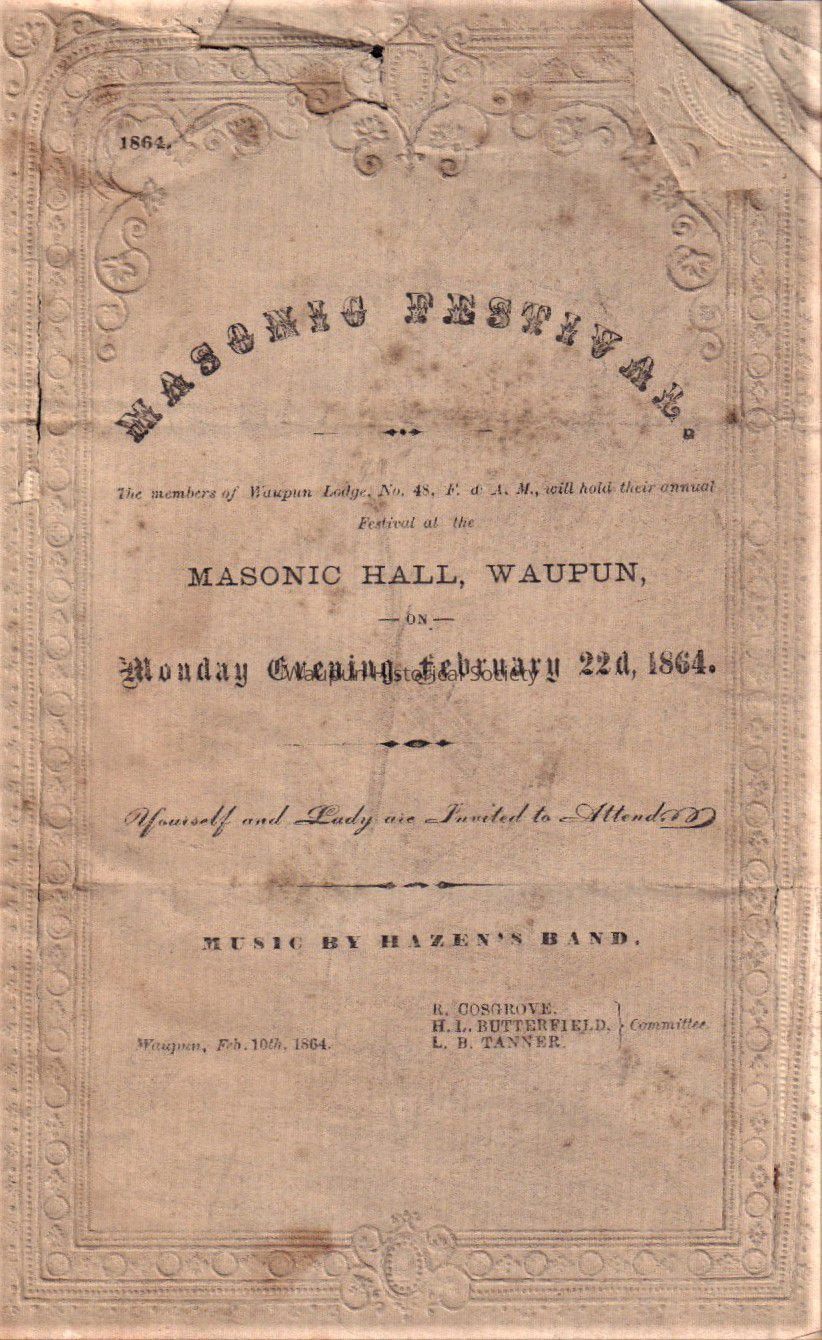 Waupun, Masonic Festival - Masonic Hall (Feb 22 1864)Acquisition