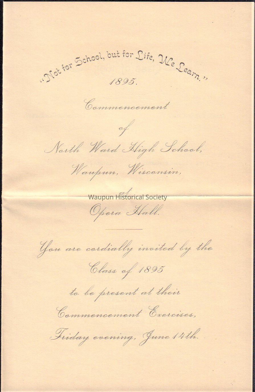Waupun High School - North Ward High School - Class of 1895 Commencement (June 14 1895)Acquisition