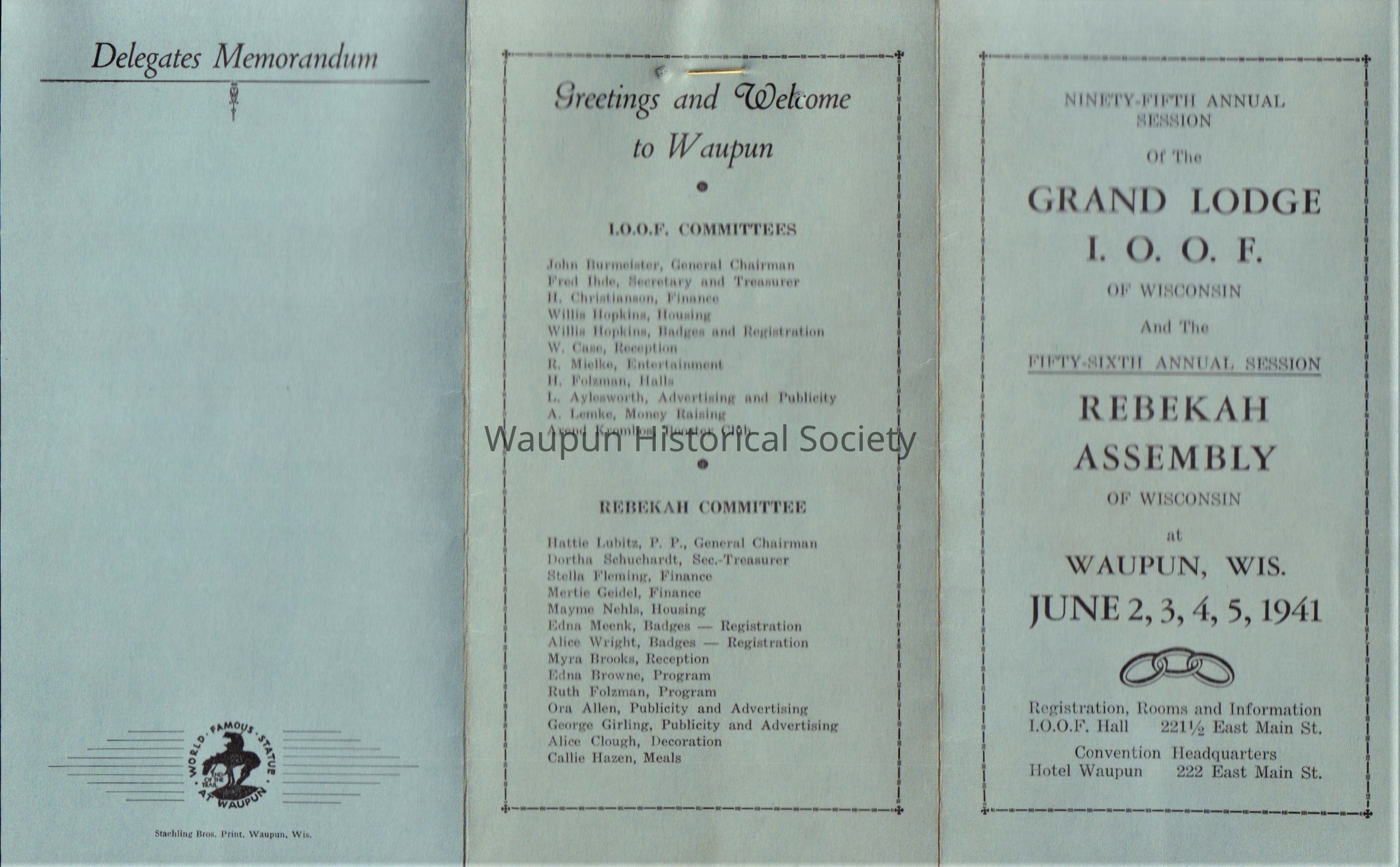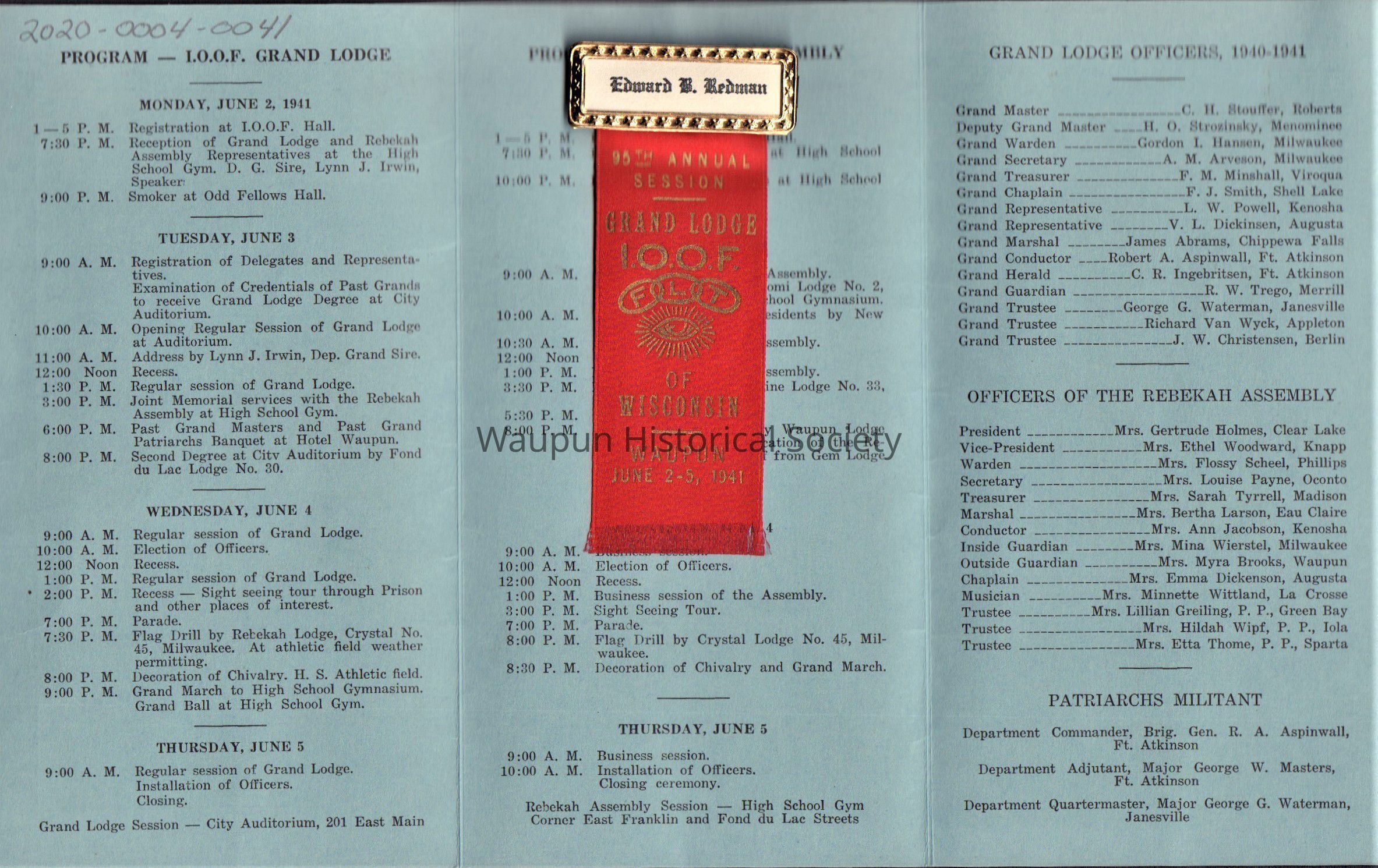 Program, Odd Fellows (95th Annual Session) and Rebekah (56th Annual Session), 1941Entry/Object ID