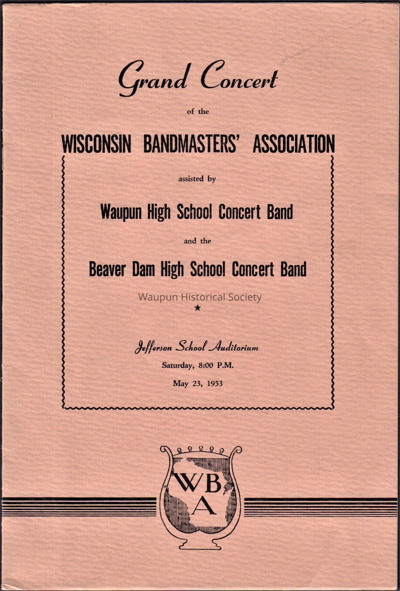 Wisconsin Bandmasters' Association "Waupun & Beaver Dam Concert Band's" (May 23 1953)Entry/Object ID